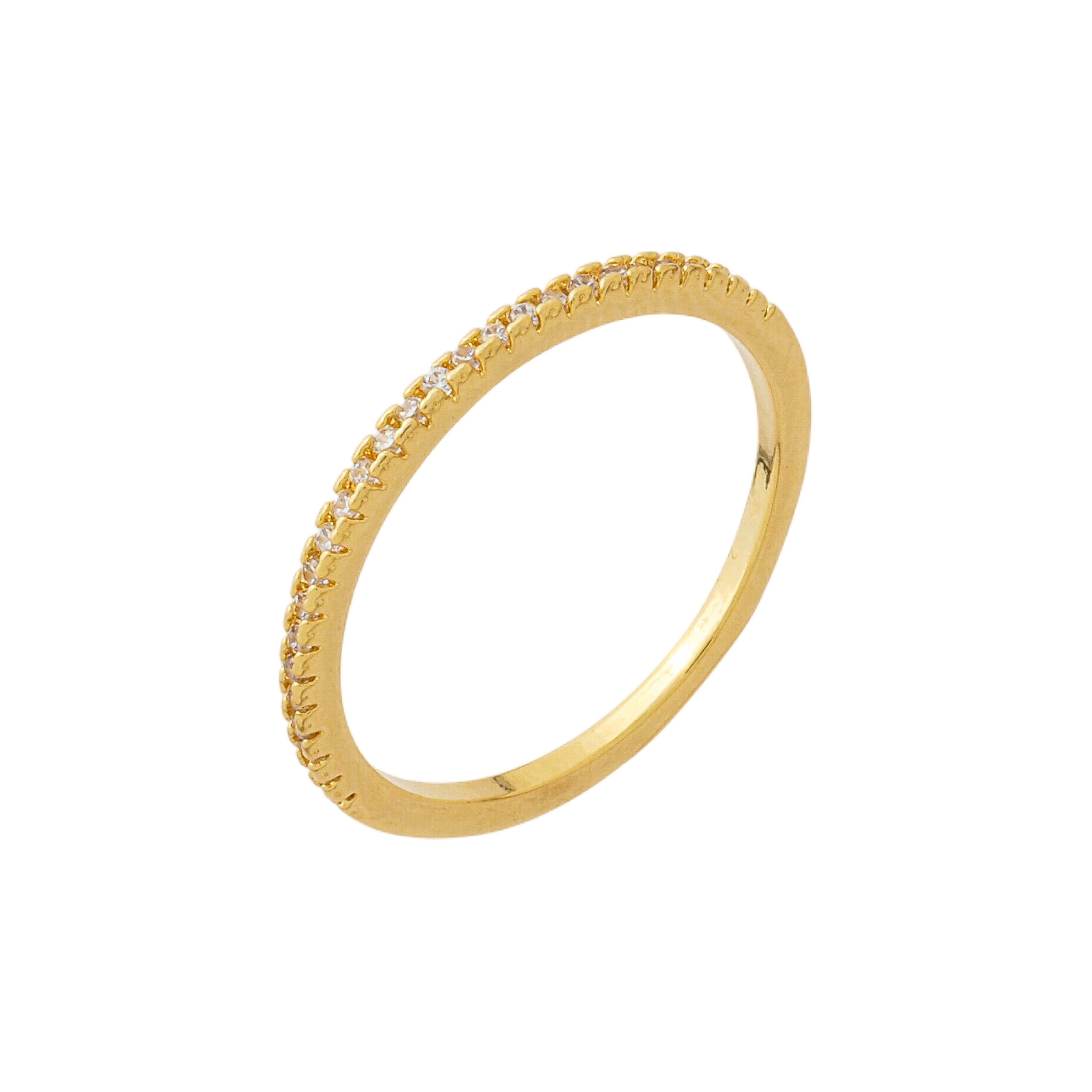 O anel aparador com zircônias banhado a ouro 18k é uma peça clássica e elegante, perfeita para quem busca sofisticação com um toque minimalista. Seu design apresenta uma fileira delicada de zircônias cravejadas, proporcionando brilho contínuo e acabamento refinado.