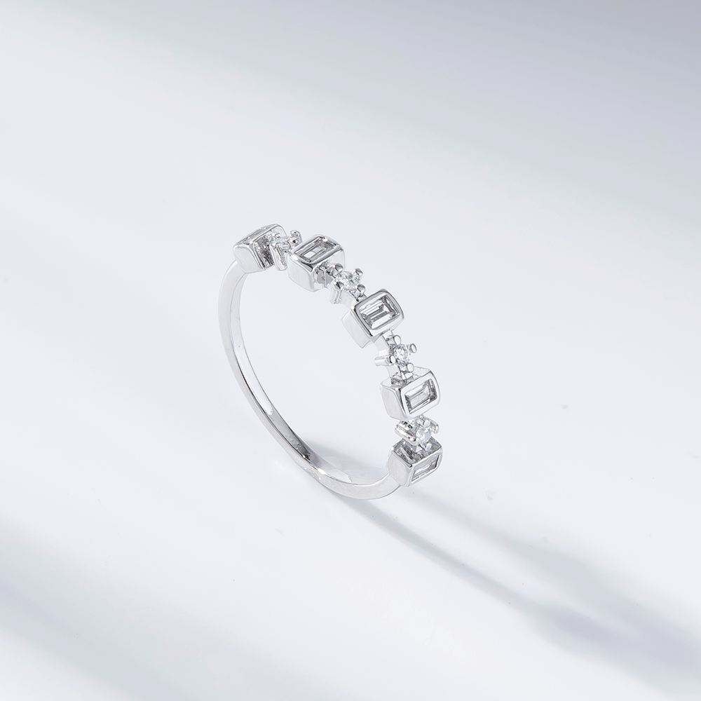 Este anel apresenta zircônias incolores em baguete, trazendo um brilho sutil e elegante. Com banho de ouro 18K, combina sofisticação e modernidade, tornando-se a escolha perfeita para quem busca um acessório sofisticado para o dia a dia ou ocasiões especiais.