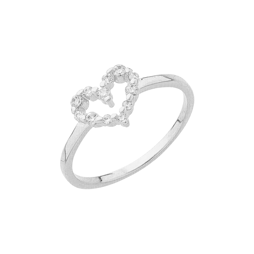Anel Mini Coração Cravejado Banho de Ródio Branco