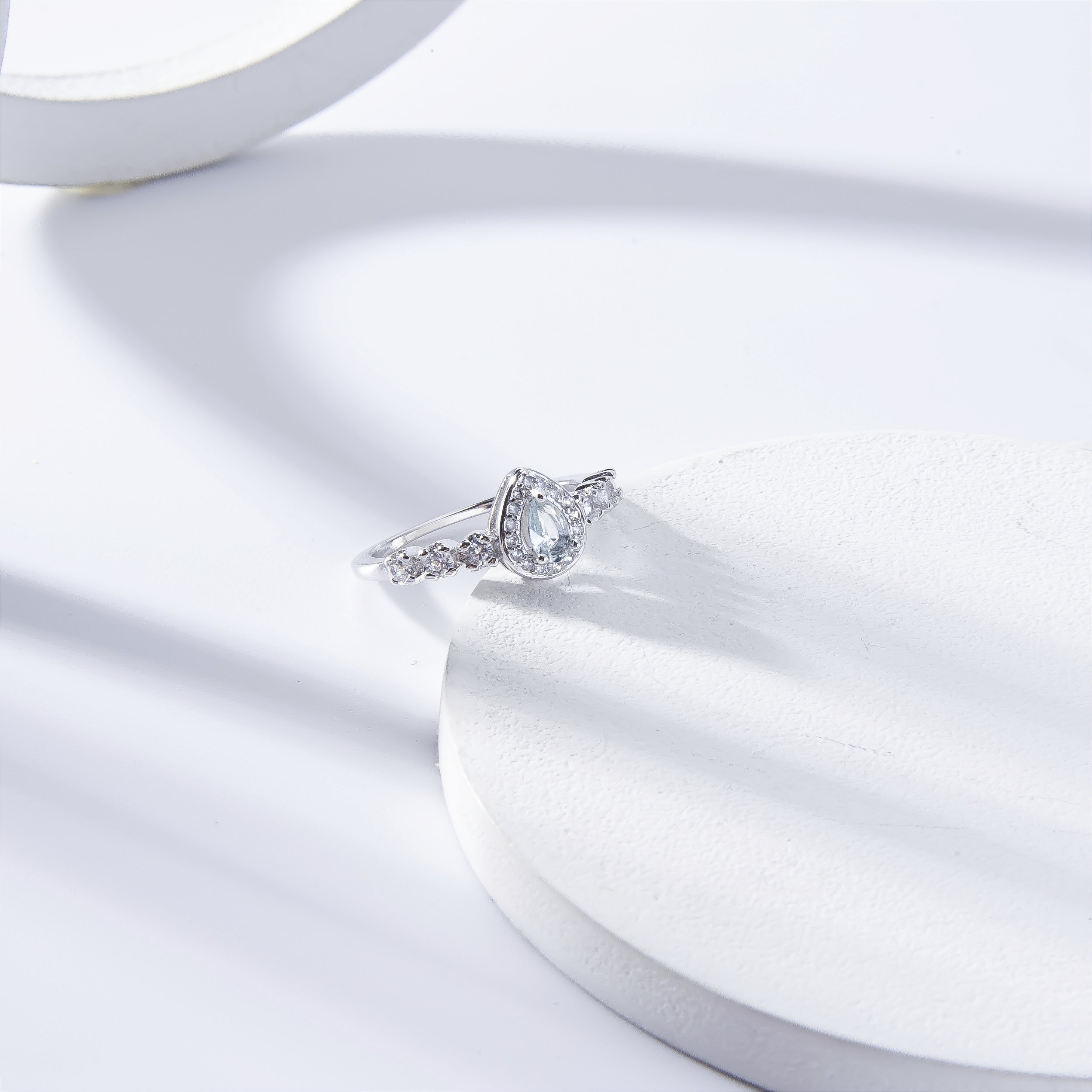 Anel delicado, Anel de gota, anel de festa, anel de zircônias, anel azul claro, anel de zircônias, anel elegante, anel clássico, anel prateado e mais.