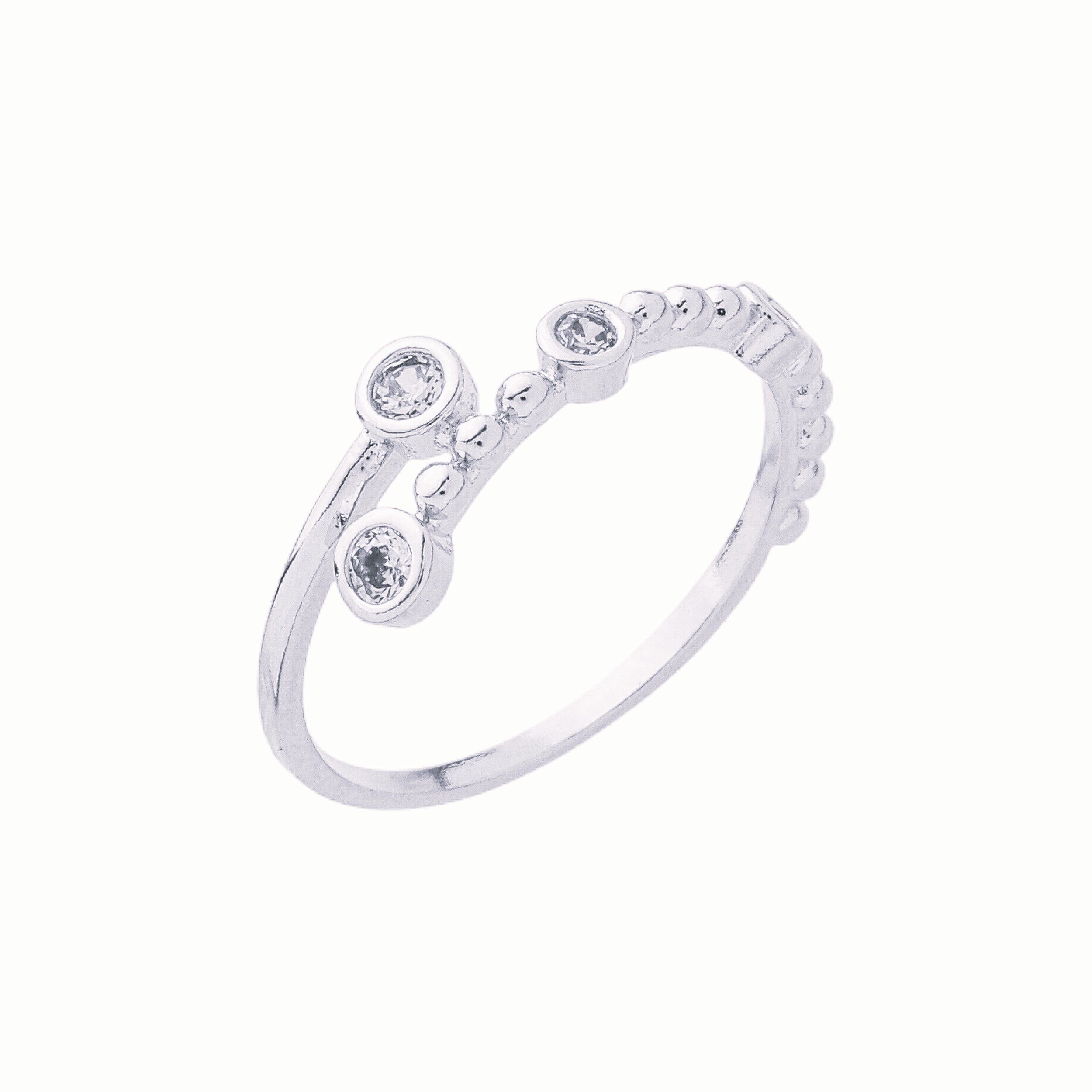 Anel Micro Esferas Lisas e Zircônias Incolor Banho de Ródio Branco