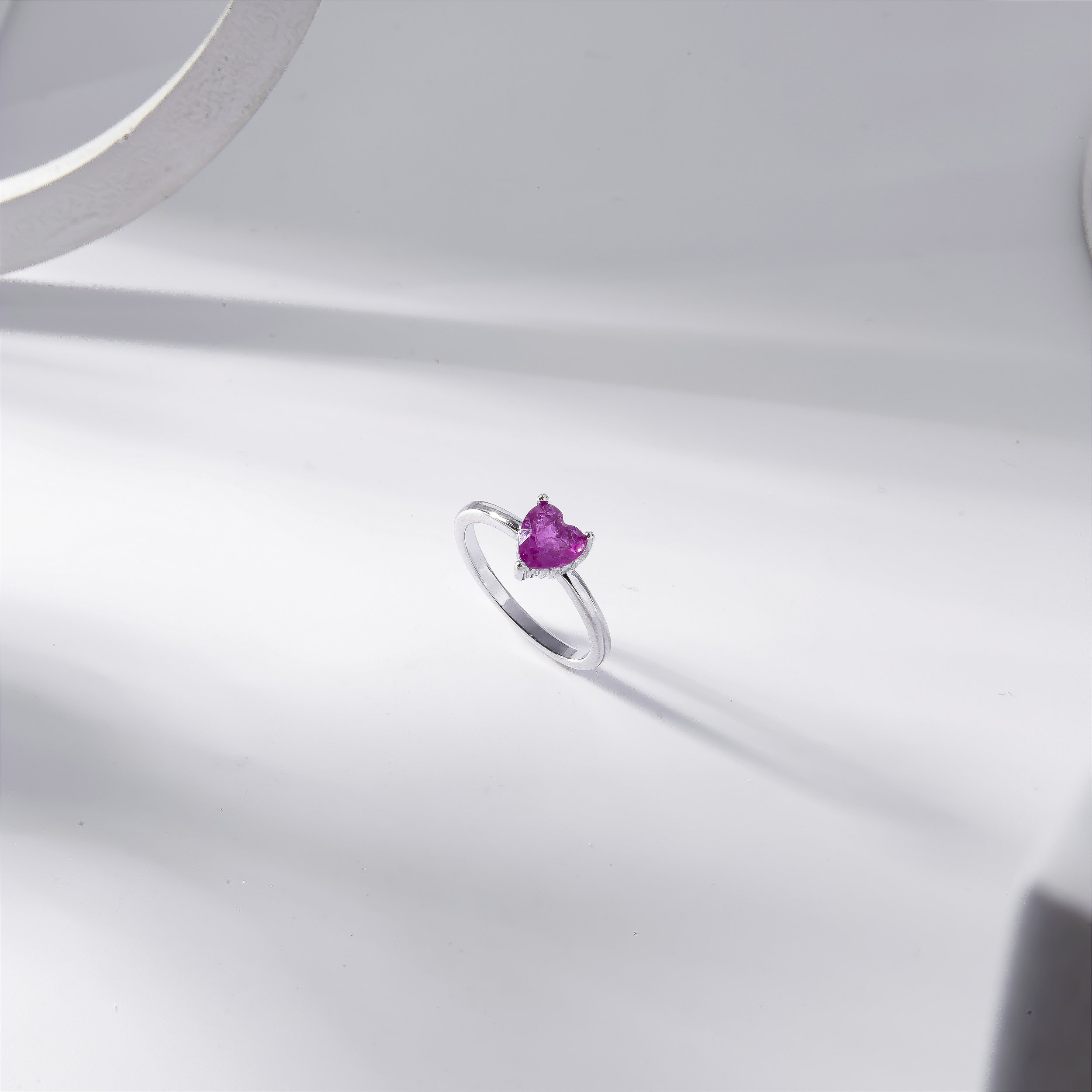 Anel no modelo solitário, composto por pedra fusion* em formato de coração na cor pink, no banho de Ródio Branco. Acessório perfeito para iluminar e colorir seu visual de maneira elegante e moderna.