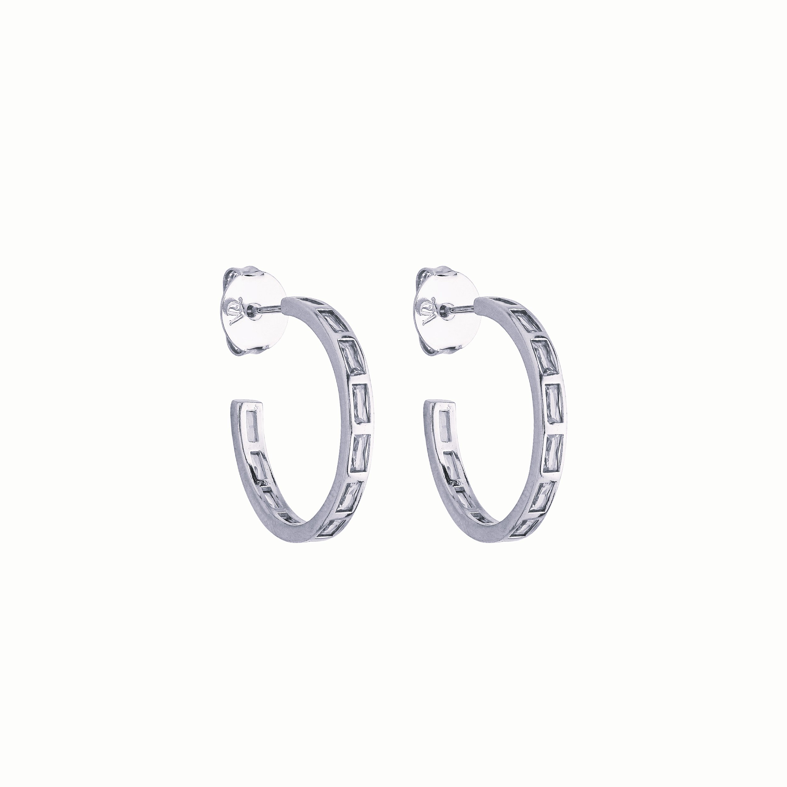 Argola Baguetes Incolor Banho de Ródio Branco