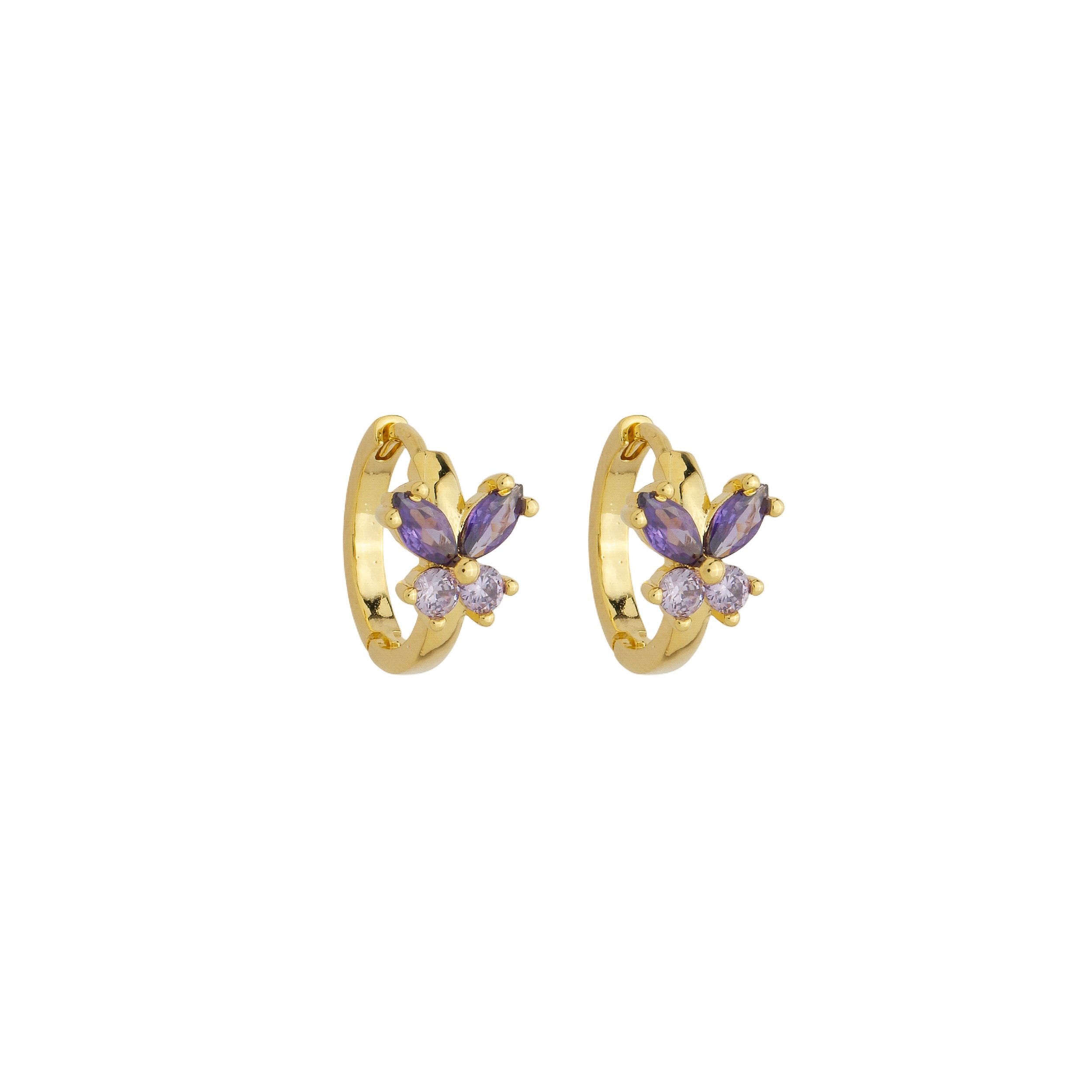 Argola Borboleta Zircônias Tanzanita Lilás Banho de Ouro 18k