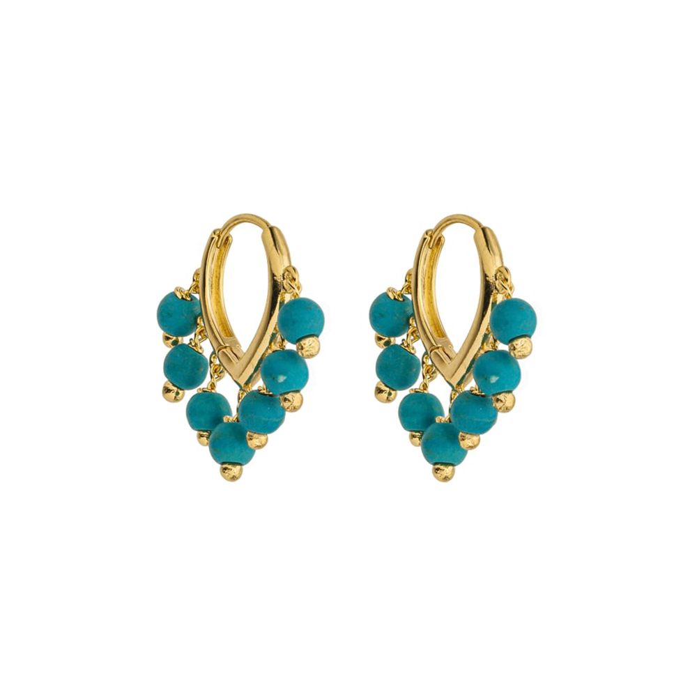 Argola com Mini Esferas Turquesa Banho de Ouro 18k