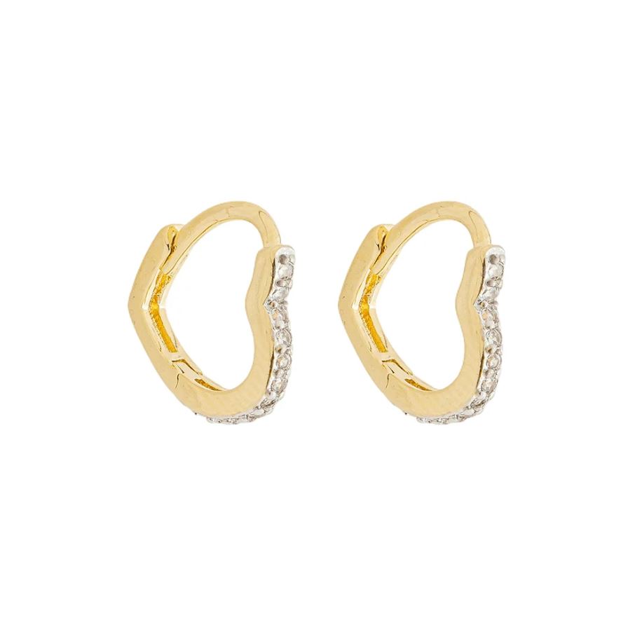 Argola Coração Cravejada Incolor Banho de Ouro 18k - 7mm