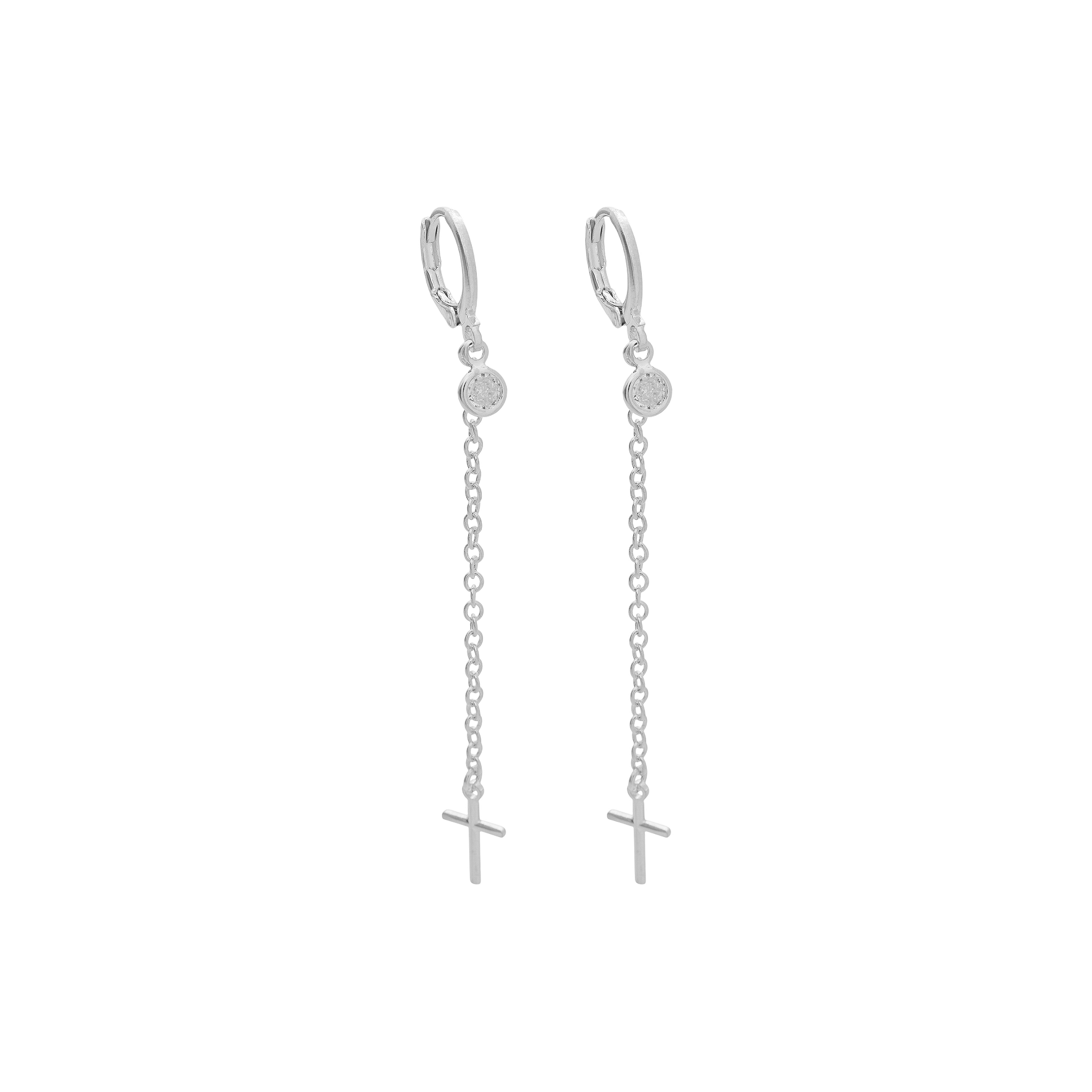 Argolinha Corrente e Cruz Banho de Ródio Branco