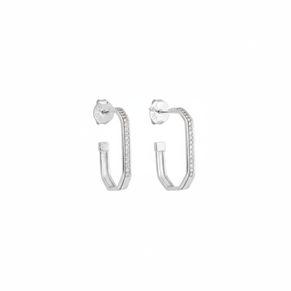 O destaque fica por conta da fileira de zircônias cravejadas em uma das faces, proporcionando um brilho sutil e refinado na medida certa. O banho ródio valoriza o acabamento e garante um visual luxuoso, ideal para quem busca uma argola diferenciada sem perder a versatilidade.