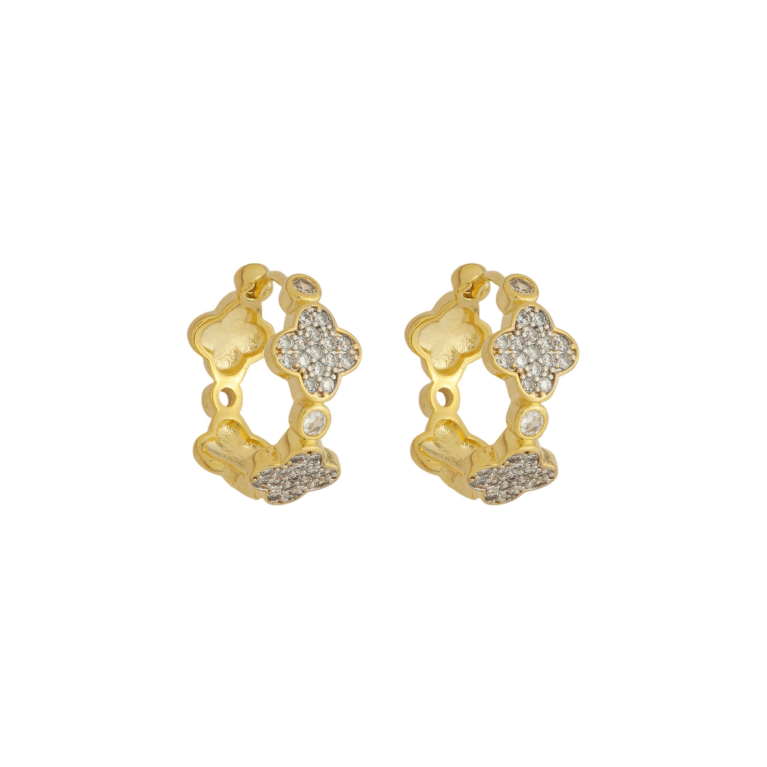 Argola Média Trevos Cravejados Banho de Ouro 18k