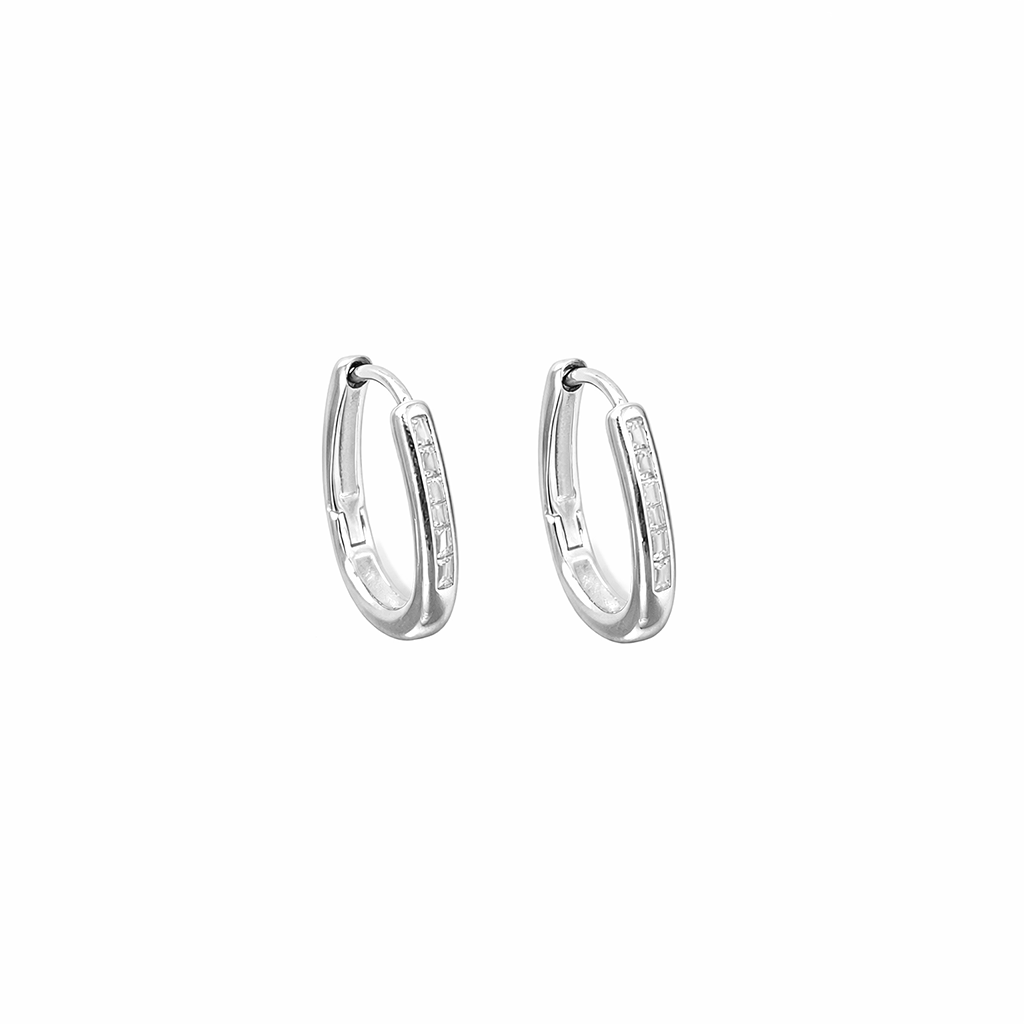 Argola Oval Centro Baguettes Incolor Banho de Ródio Branco