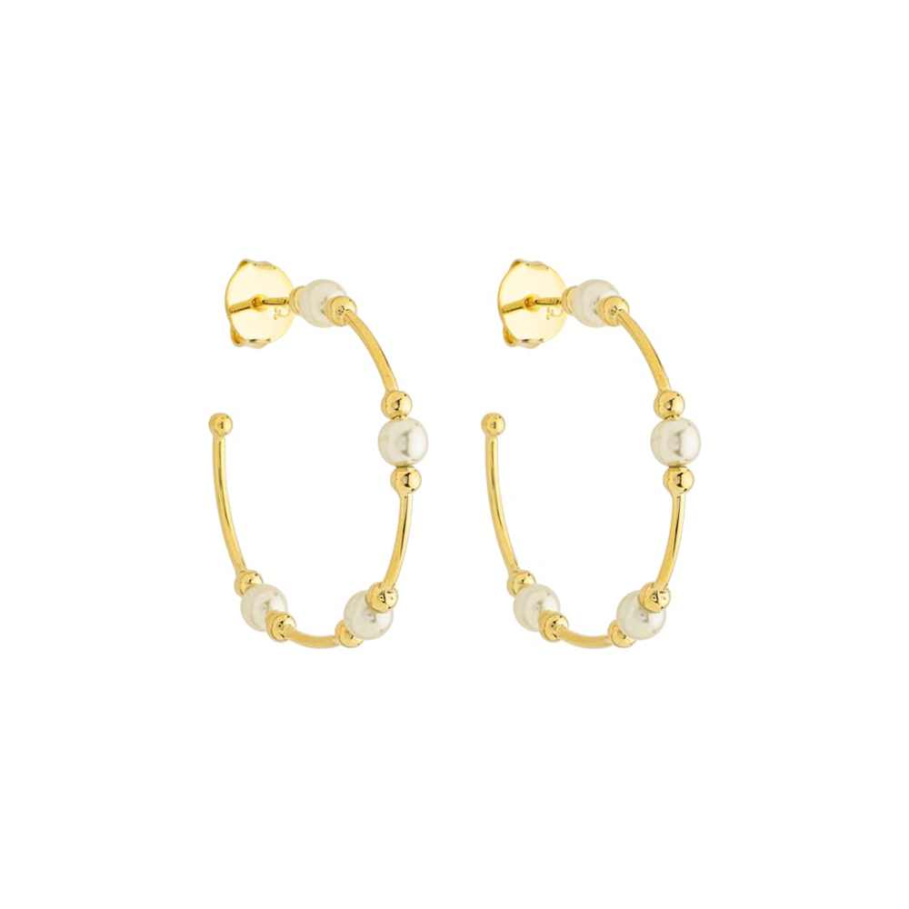 Argola Pérolas e Esferas Banho de Ouro 18k