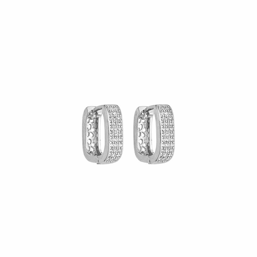 Argola Retangular Zircônias Incolor Banho de Ródio Branco