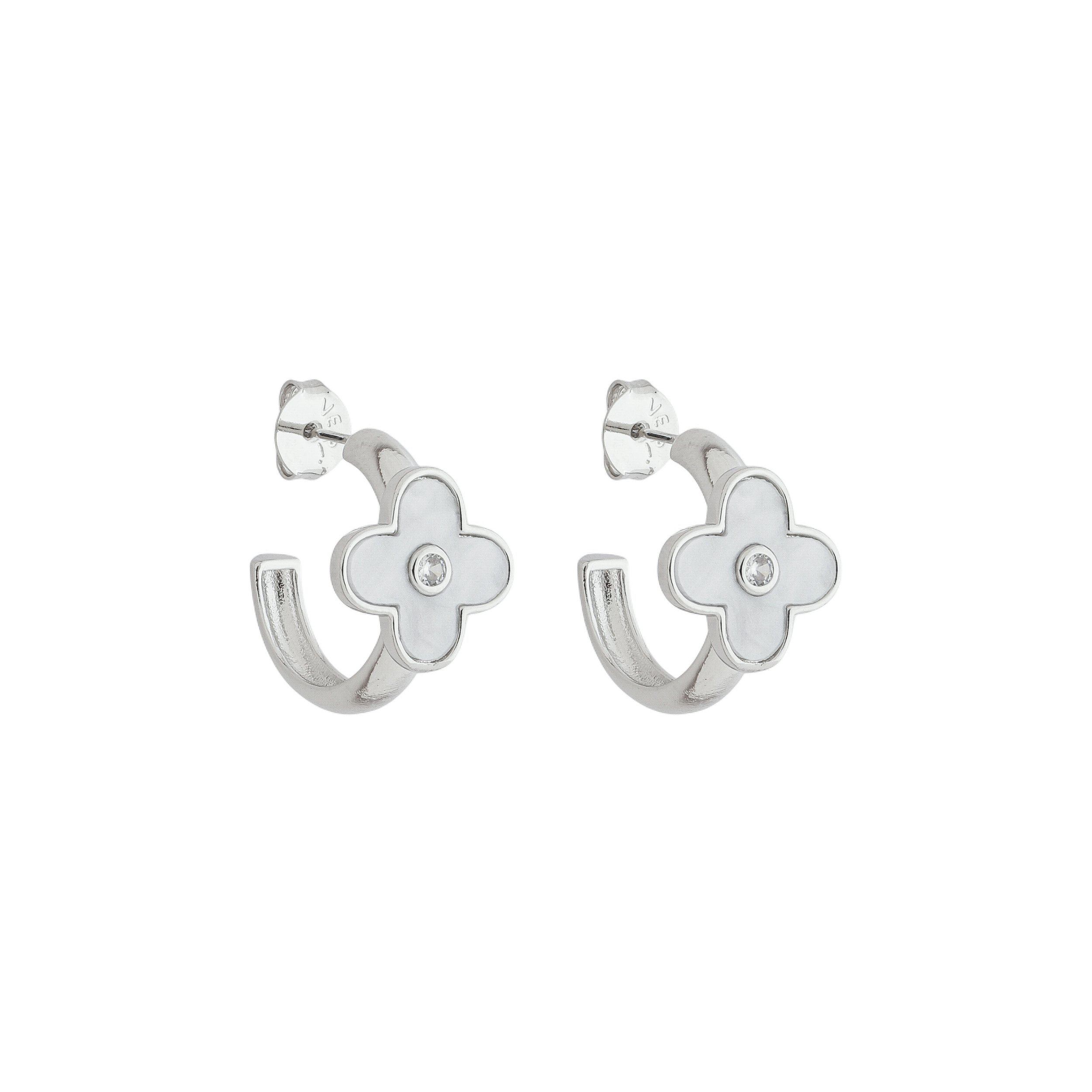 Argola Trevo Madreperola com Detalhe Zircônia Incolor no Banho de Ródio