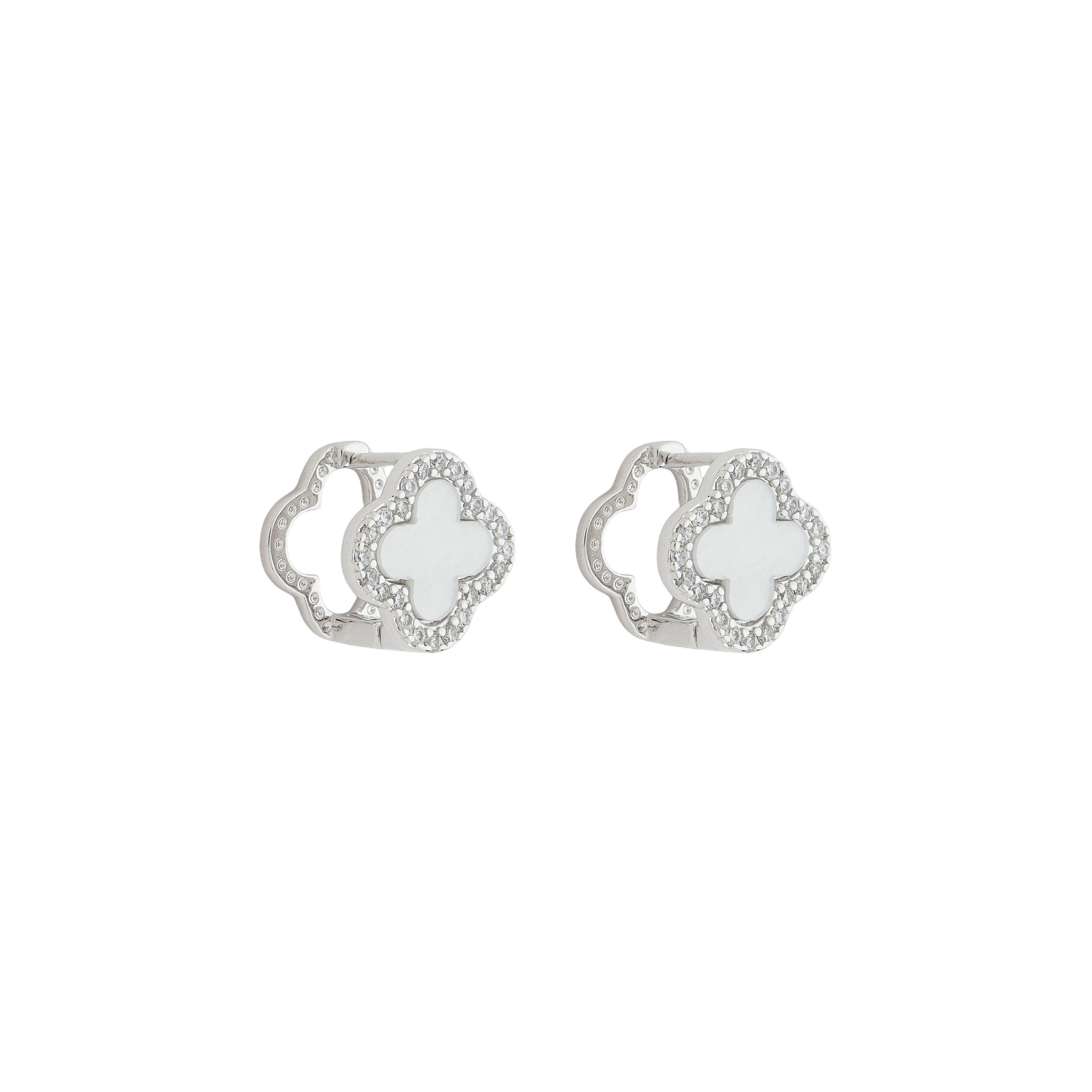 Argola Trevo Madrepérola Banho de Ródio Branco