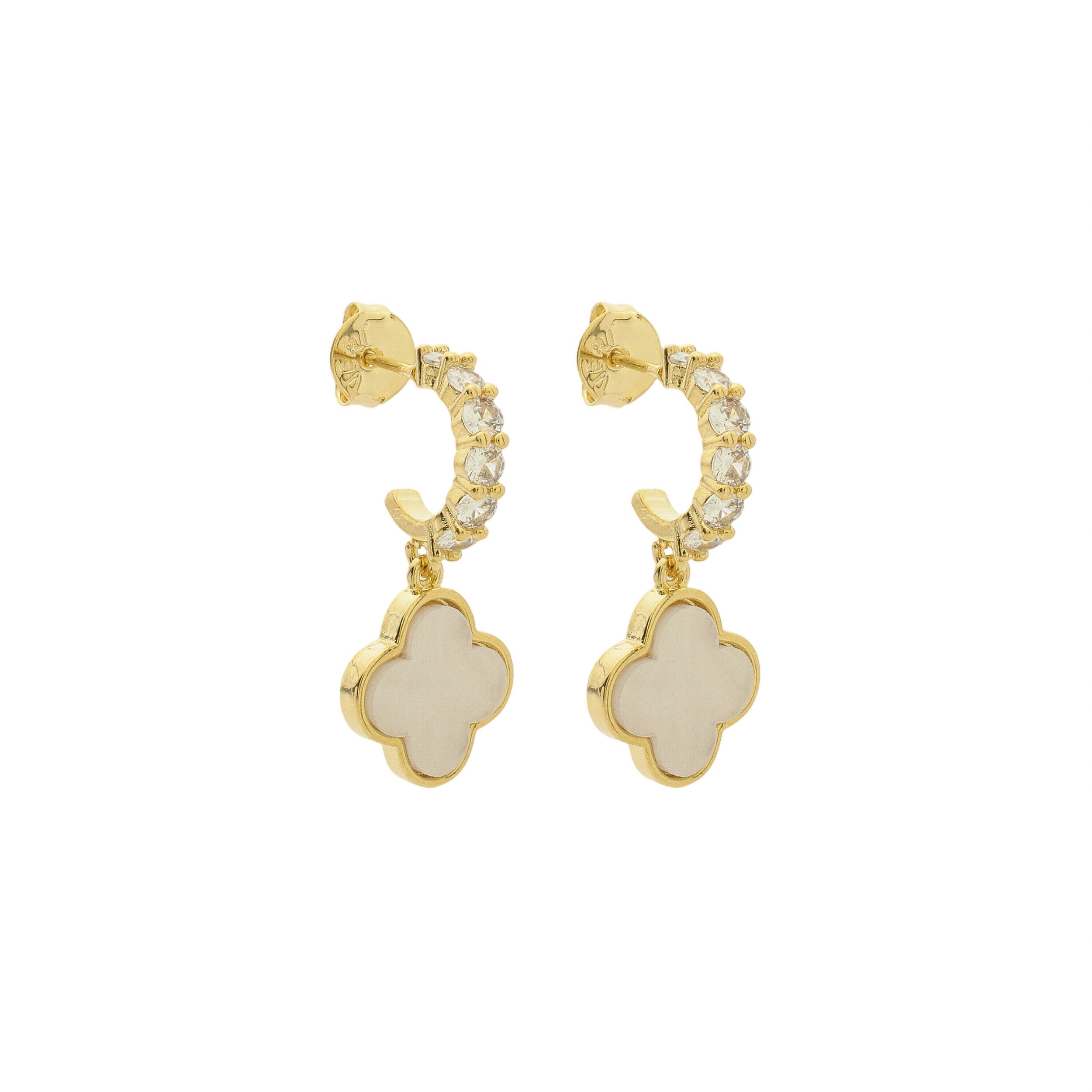 Argola Trevo Madreperola com Zircônias no Banho de Ouro 18k