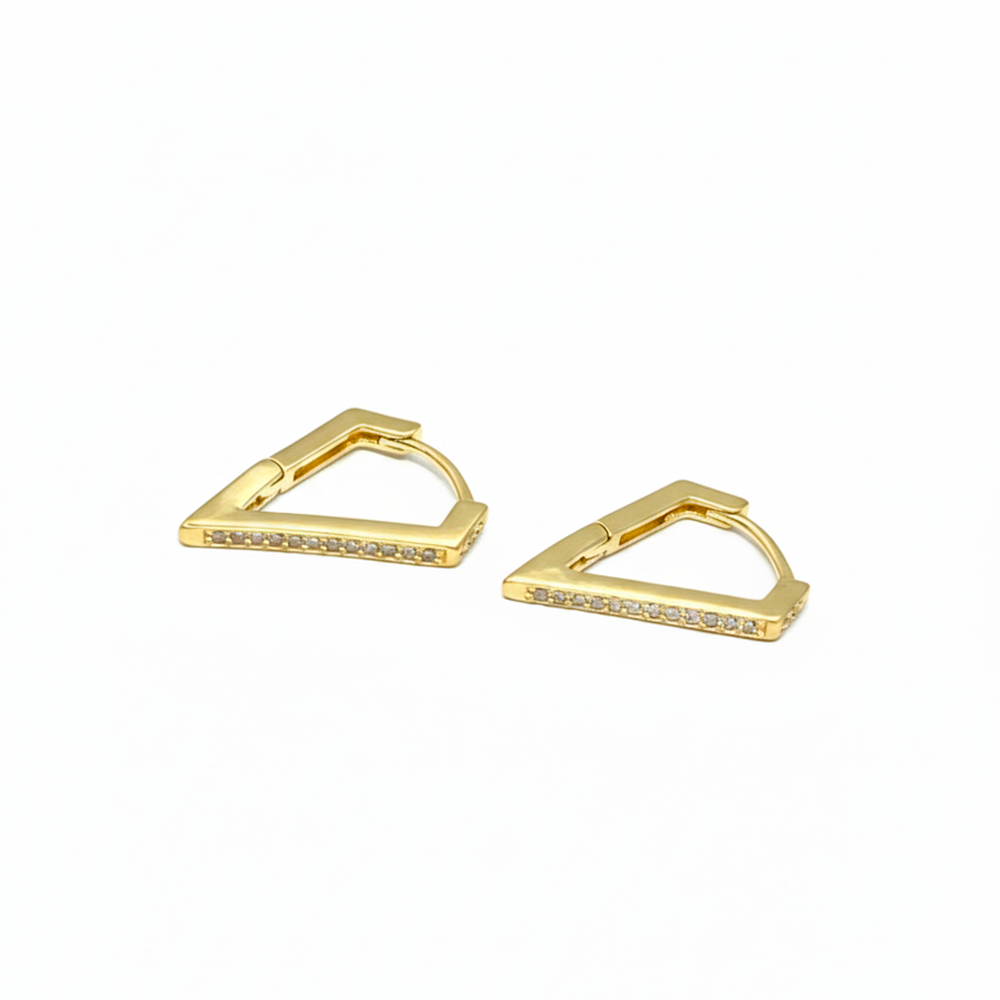 Argola Triangular Zircônias Incolor Banho de Ouro 18k