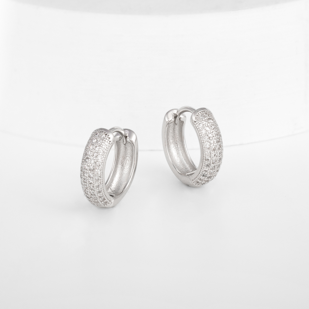 Argolinha composta por fecho click, cravejada de zircônias incolor e banho de ródio branco. Argolinha perfeita para criar lindas composições e arrasar no mix.