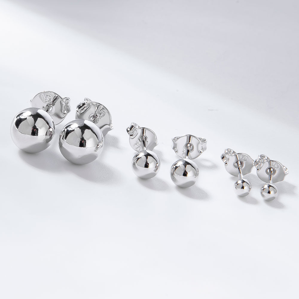 Trio de brincos basiquinhos composto por três tamanhos de brinco esfera liso e banho de ródio branco. Acessório super delicado e cheio de charme, ideal para primeiro, segundo e terceiro furo. Semijoias com garantia de 6 meses.