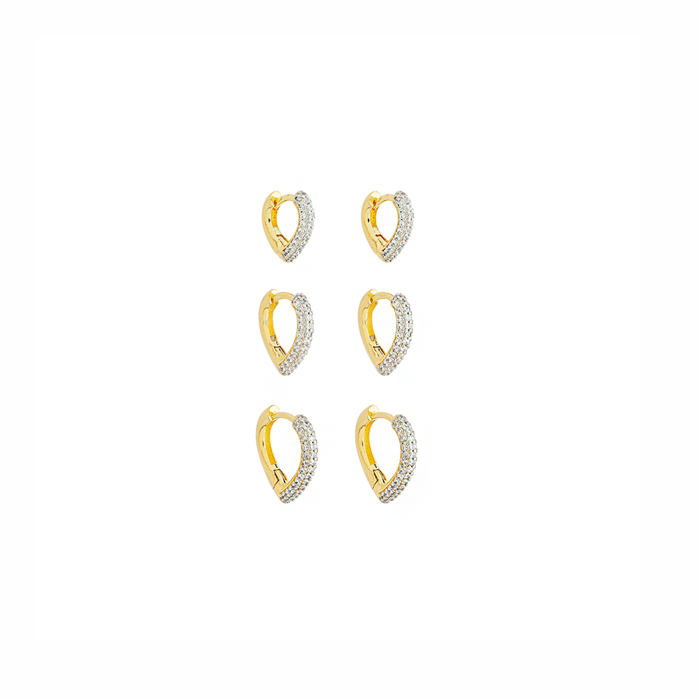 Basiquinhos Argolas Corações e Zircônias Incolor