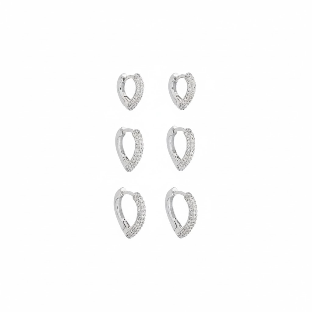 Basiquinhos Argolas Corações e Zircônias Incolor