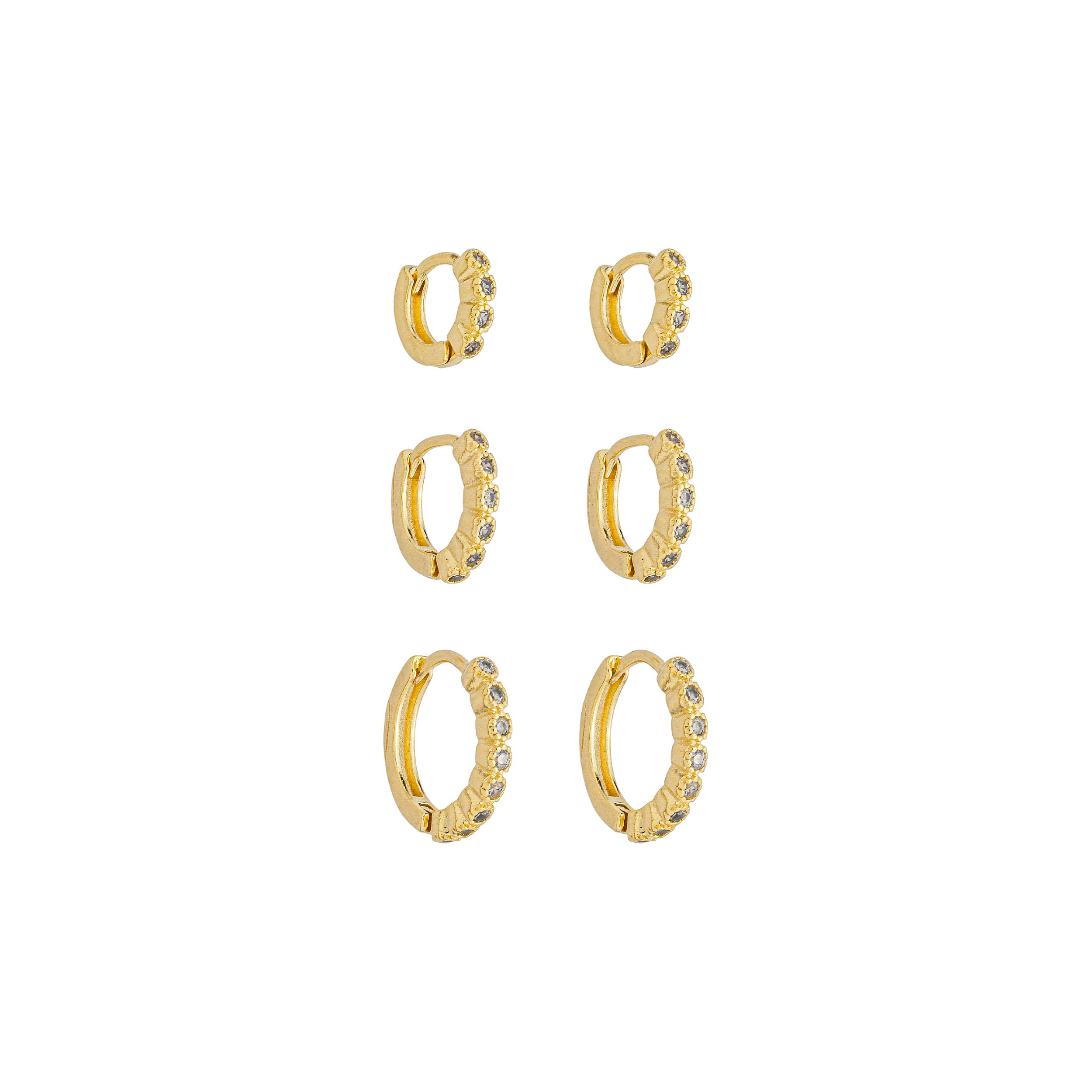 Delicado e versátil, este trio de brincos de argolinha traz três tamanhos diferentes, todos com detalhes em zirconias que proporcionam brilho na medida certa. Perfeito para compor mix de brincos moderno ou usar individualmente, adicionando elegância e sofisticação ao visual.