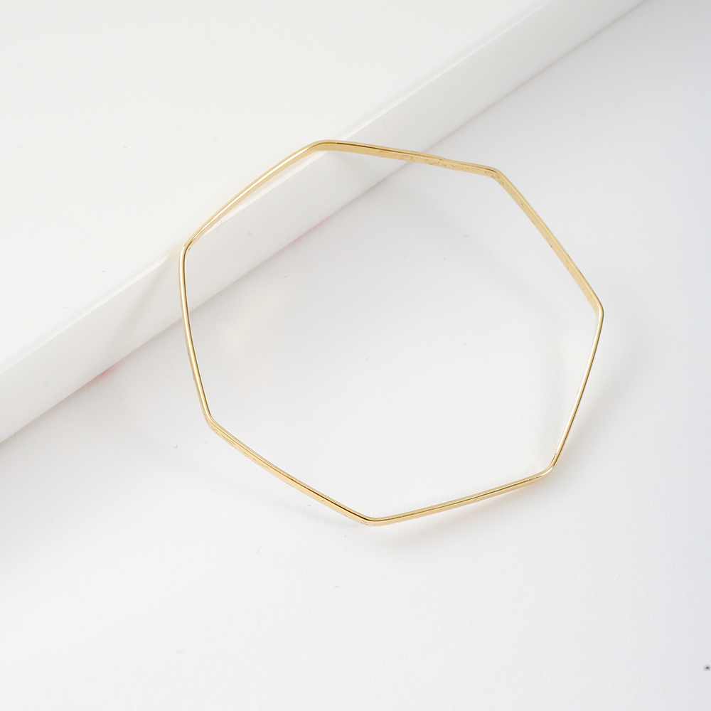 Bracelete não regulável, fechado, formato de hexágono com banho de Ouro 18k.
