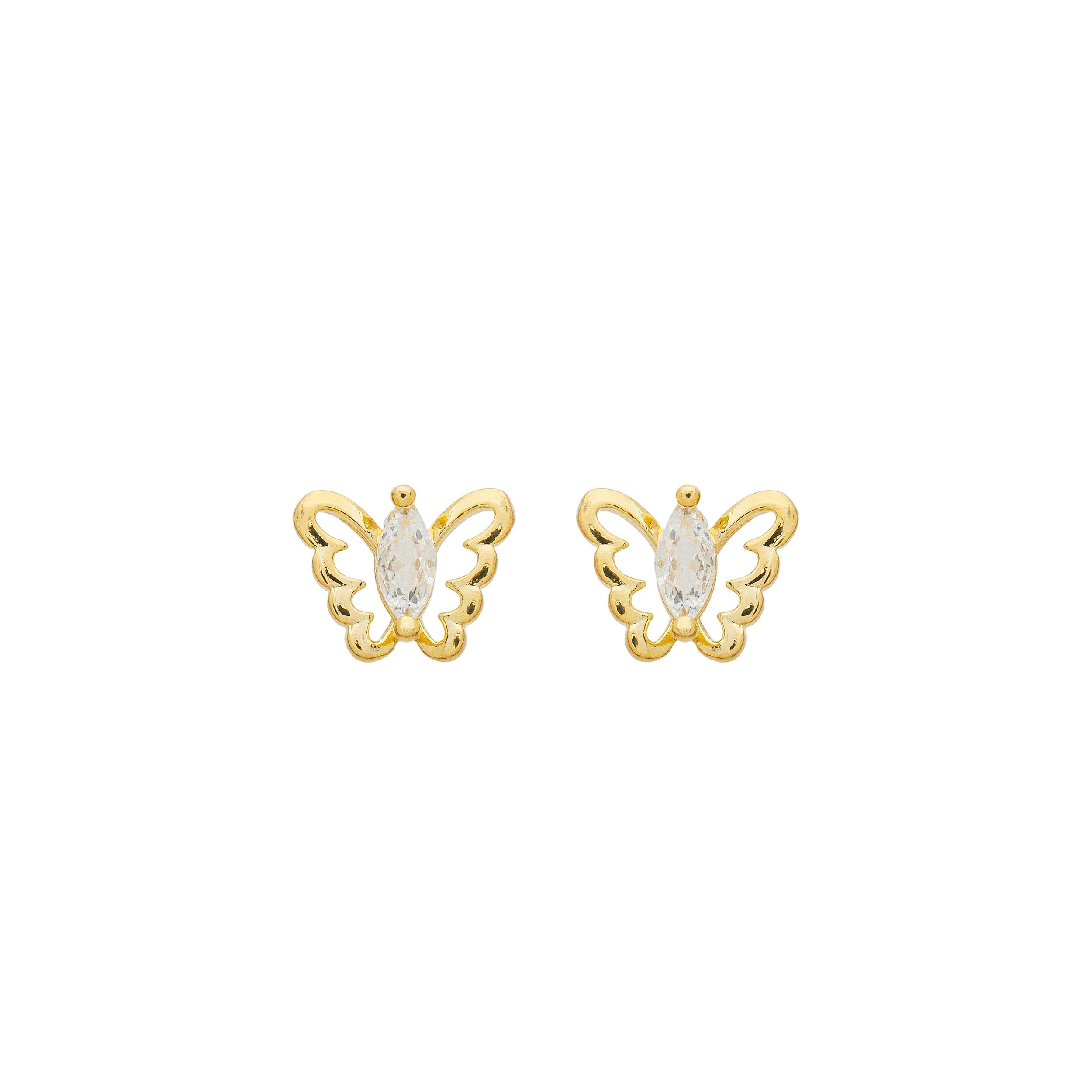 Brinco Borboleta Vazada Zircônia Incolor Banho de Ouro 18