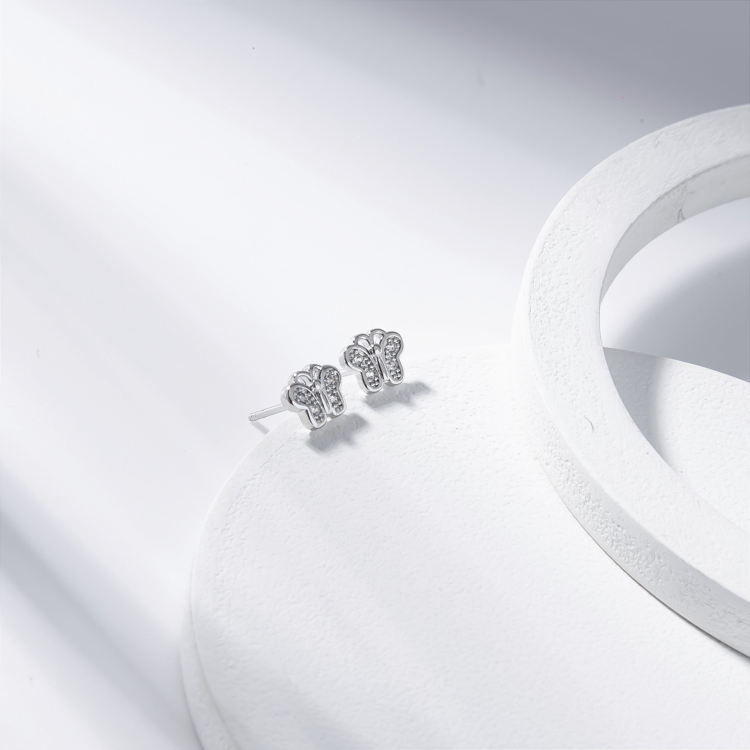 Brinco Borboleta Zircônia Incolor Banho de Ródio Branco