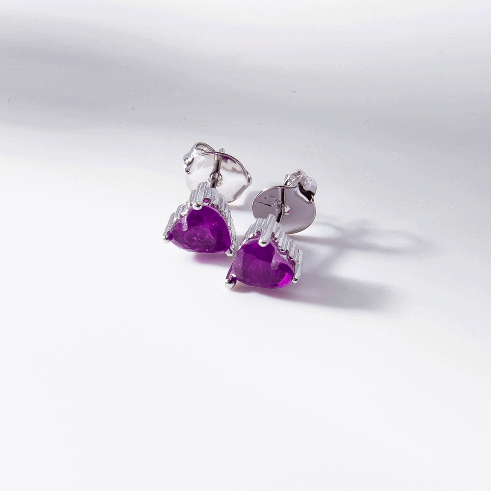 Brinco Coração Pequeno Ametista Fusion Banho de Ródio Branco