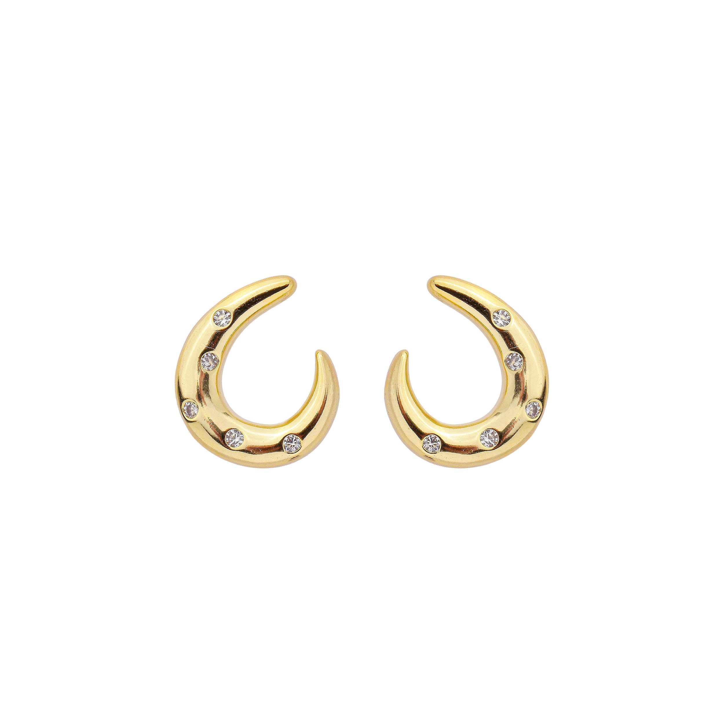 Brinco Curvado Zircônias Incolor Banho de Ouro 18k