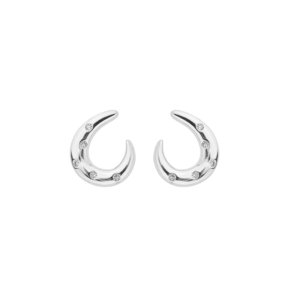 Brinco Curvado Zircônias Incolor Banho de Ródio Branco