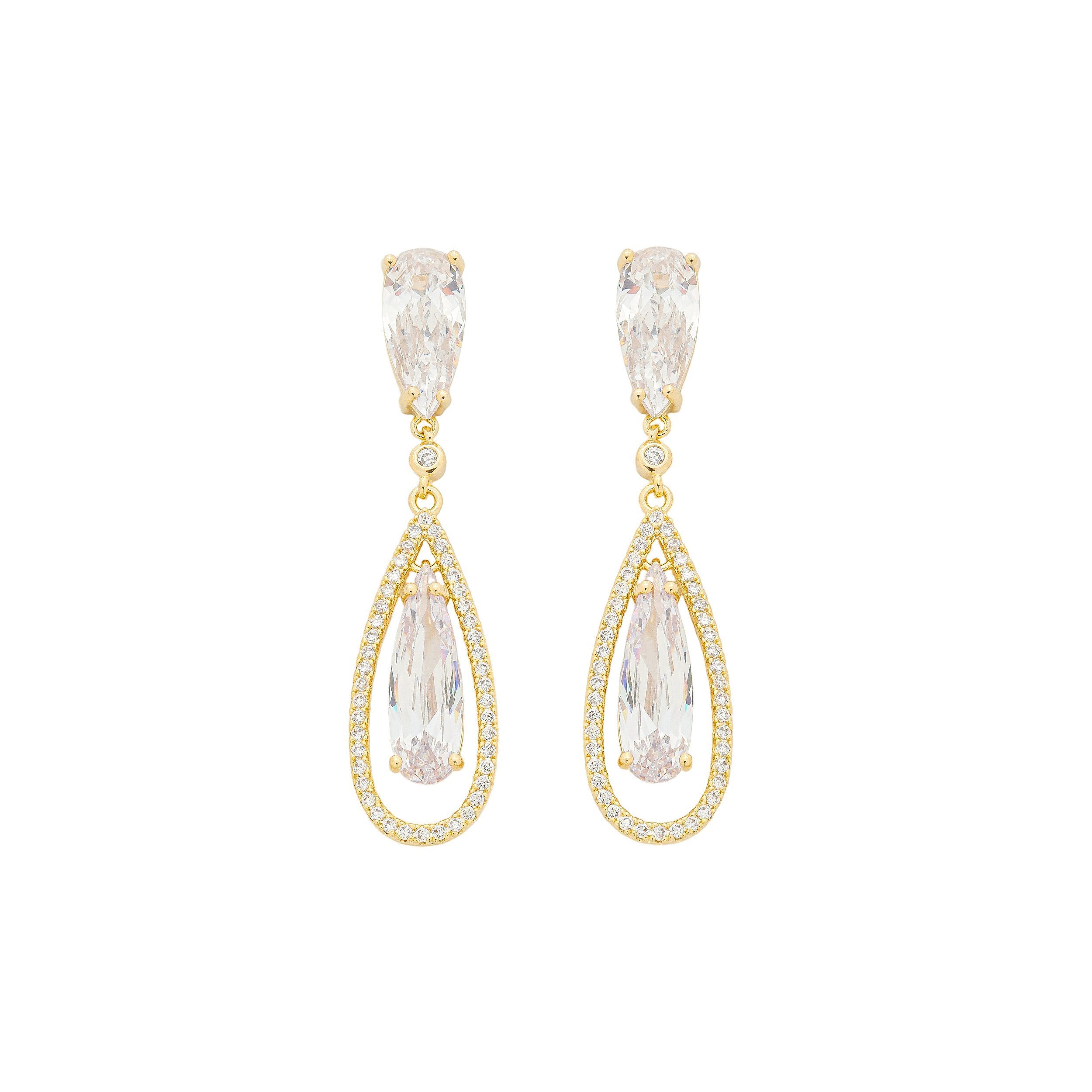 Brinco Duas Gotas Cravejadas Incolor Banho de Ouro 18k