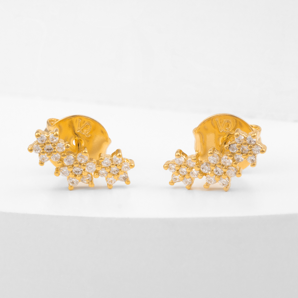 Brinco Ear Cuff Estrelas Zircônias Incolor Banho de Ouro 18k