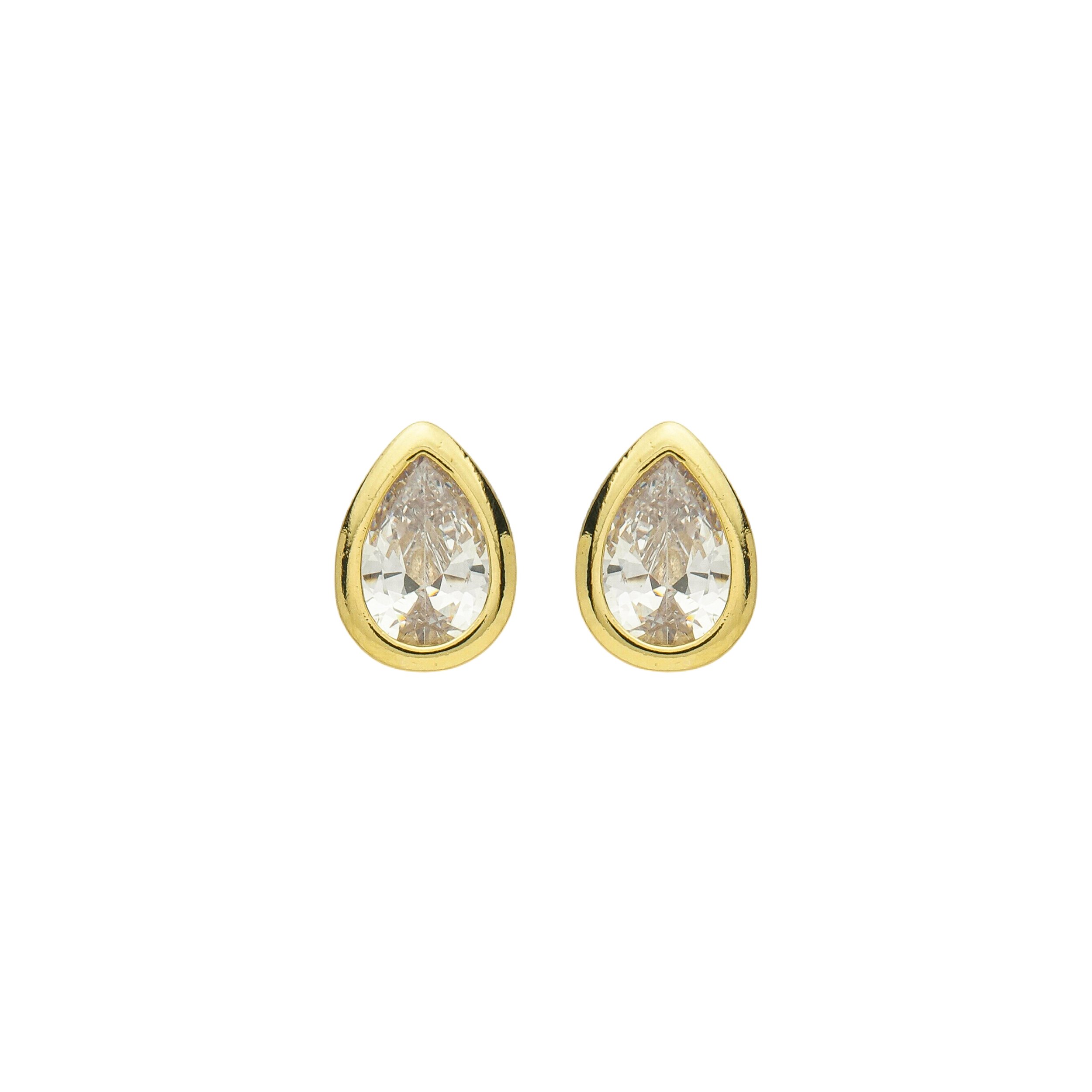 Brinco Gota Grande Zircônia Incolor Banho de Ouro 18k