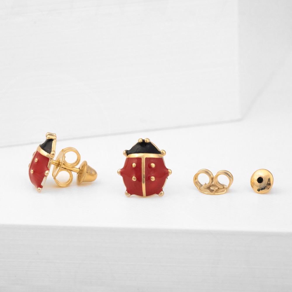 Brinco Infantil de Joaninha Vermelha e Preta Banho de Ouro 18k