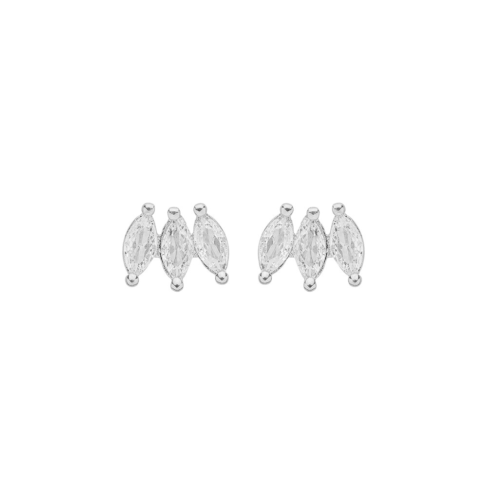 Brinco Pequeno Zircônias Navettes Banho de Ródio Branco