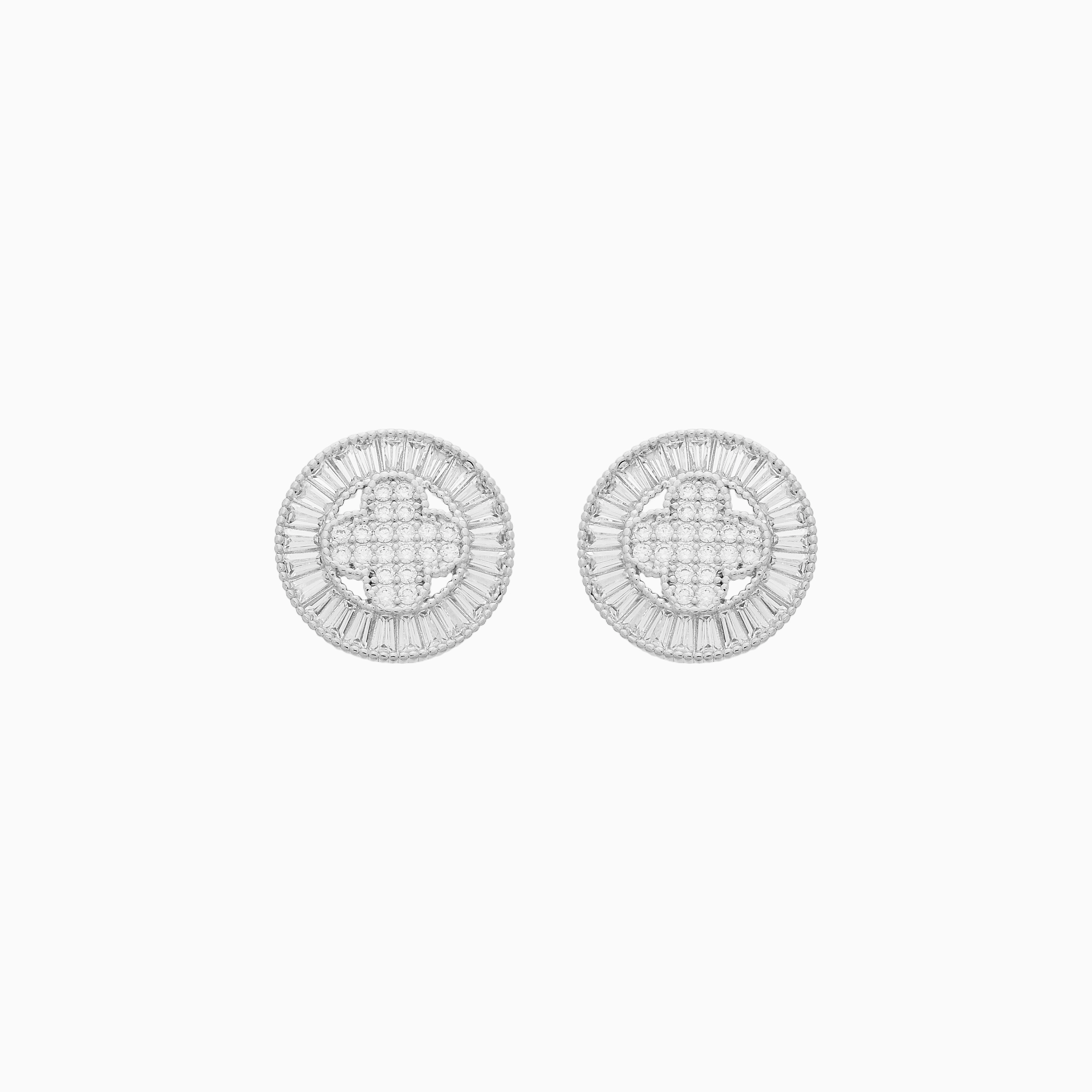 Brinco Pizza Centro Cravejado Banho de Ródio Branco