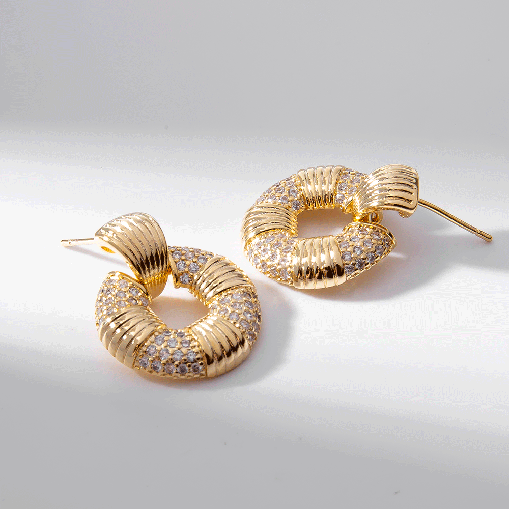 Brinco Redondo Detalhes Cravejado Zircônias Incolor Banho de Ouro 18k