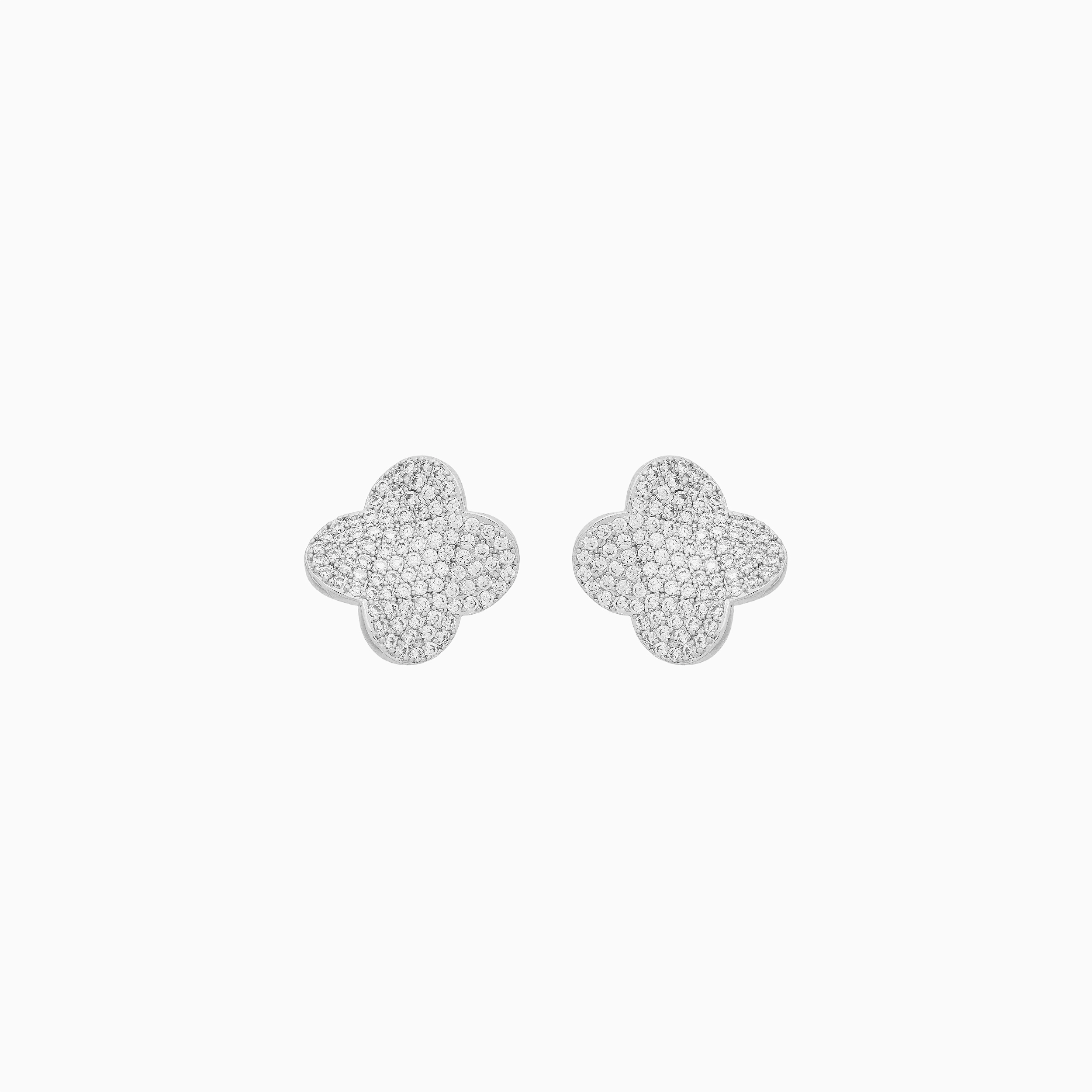 Brinco Trevo Cravejado Zircônias Incolor Banho de Ródio