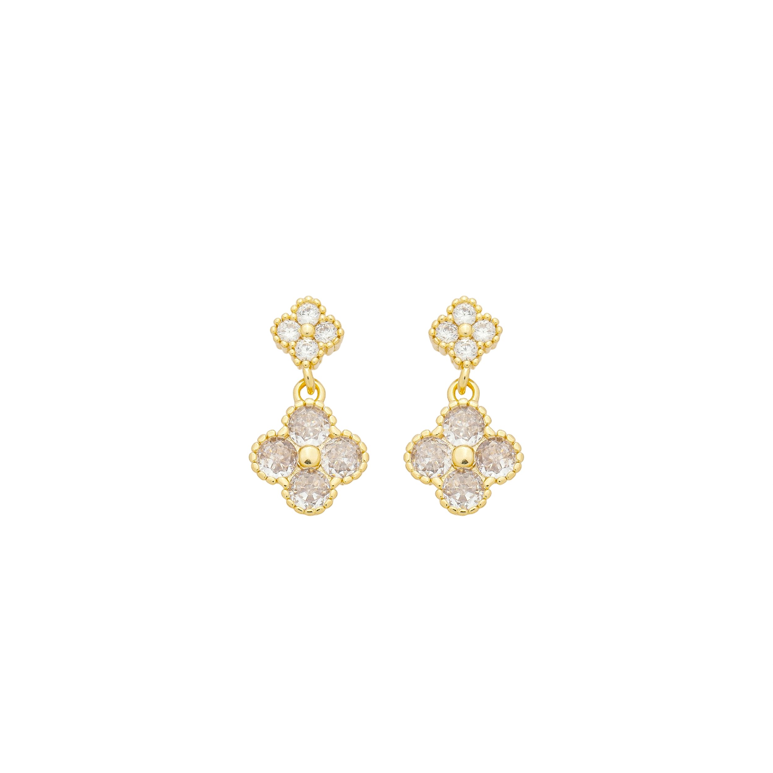 Brinco Trevo Duplo com Zircônias no Banho de Ouro 18K