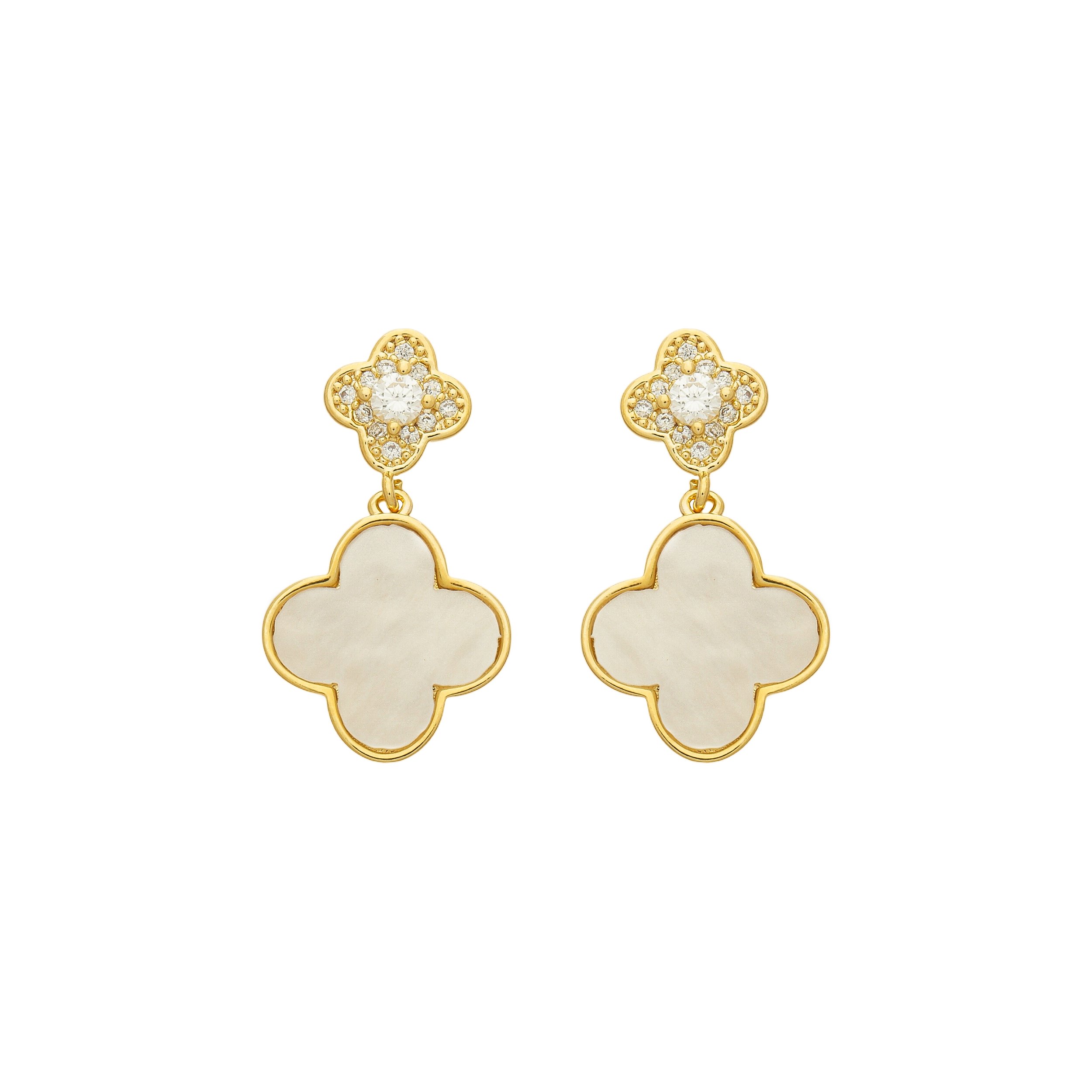 Brinco Trevo Duplo Madrepérola Banho de Ouro 18k