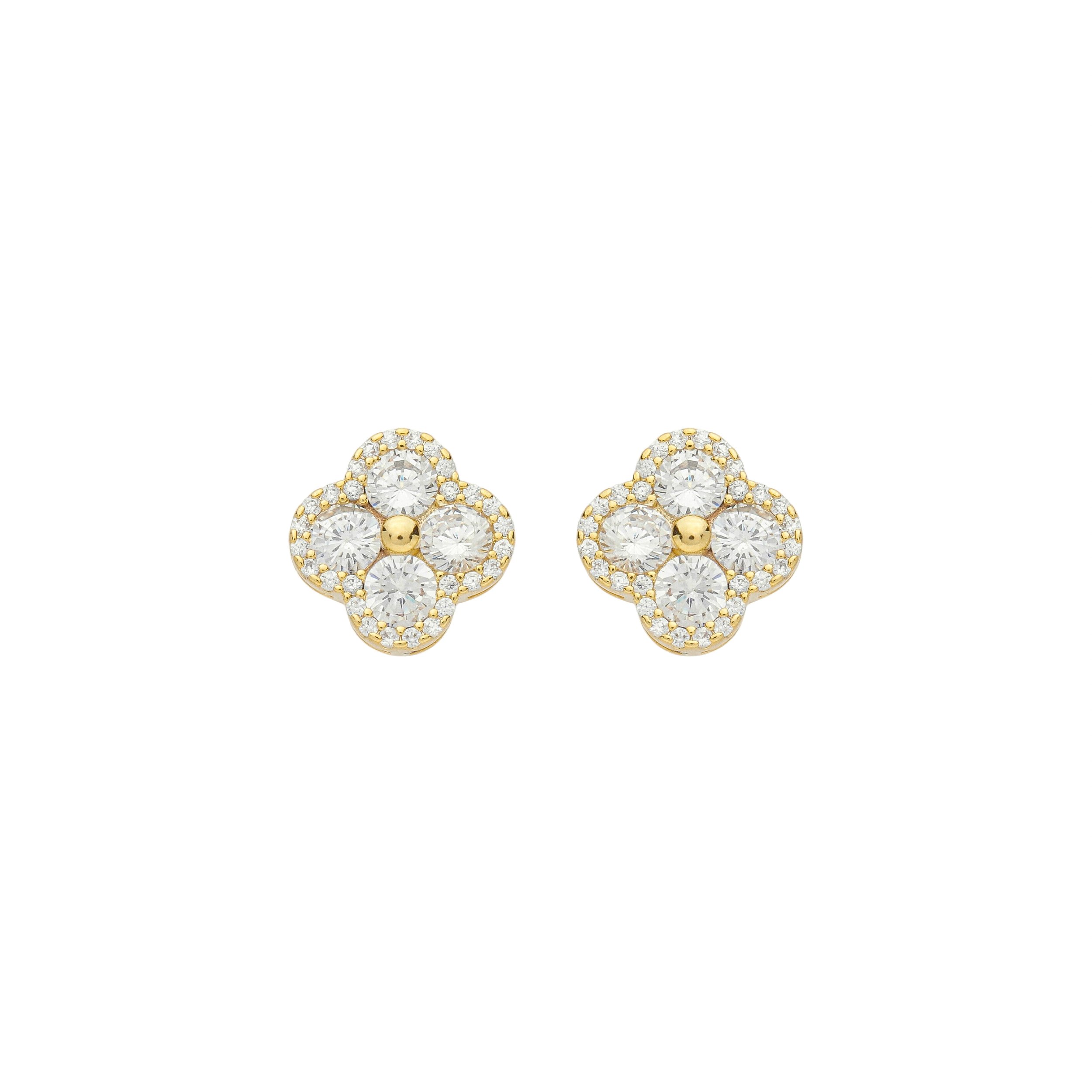 Brinco Trevo Zircônias Incolor Banho de Ouro 18k