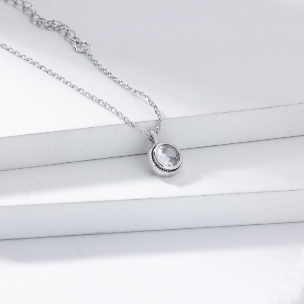 Este colar curto é composto por delicada corrente de mini elos e pingente de ponto de luz de zircônia incolor.