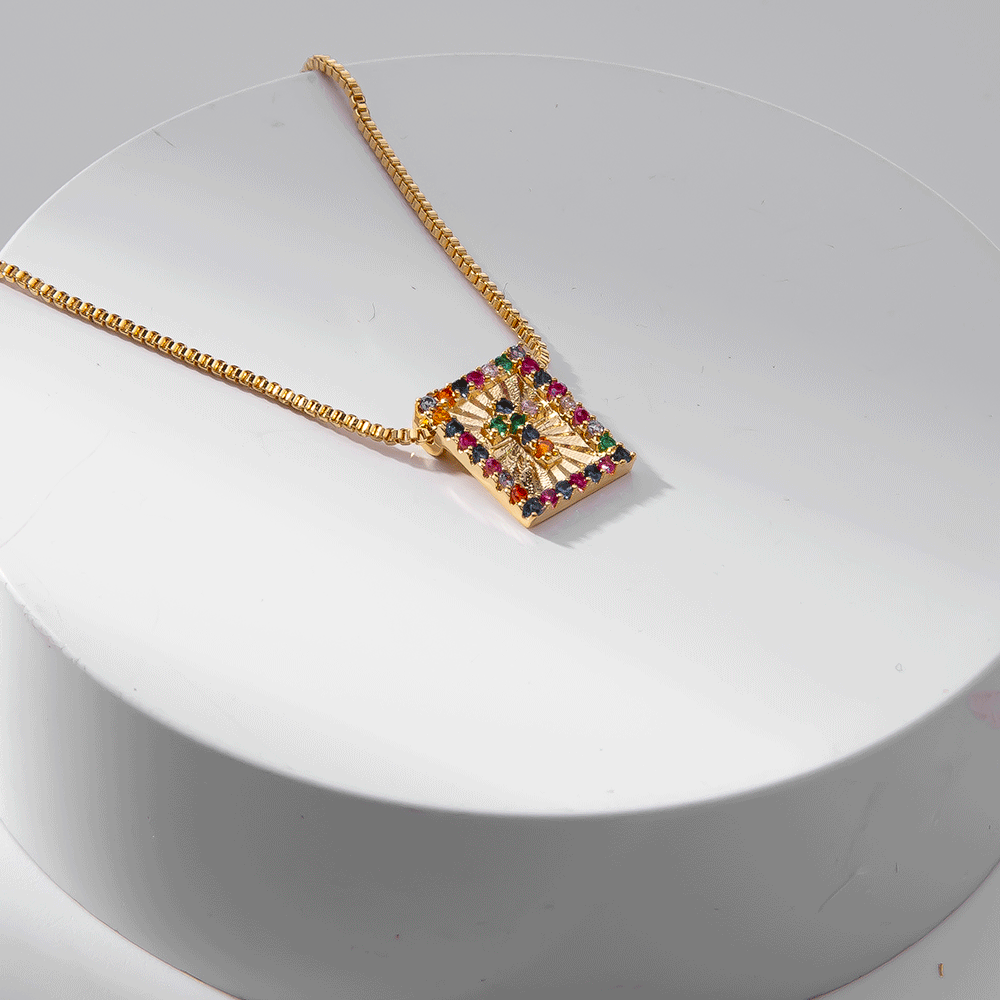 Adicione um toque de brilho e estilo ao seu visual com o nosso Colar Cruz Cravejado em Zircônias Coloridas, banhado em ouro 18k. Este design único combina a simbolização da cruz com a vivacidade das zircônias coloridas, criando uma peça que é tanto elegante quanto cheia de significado.