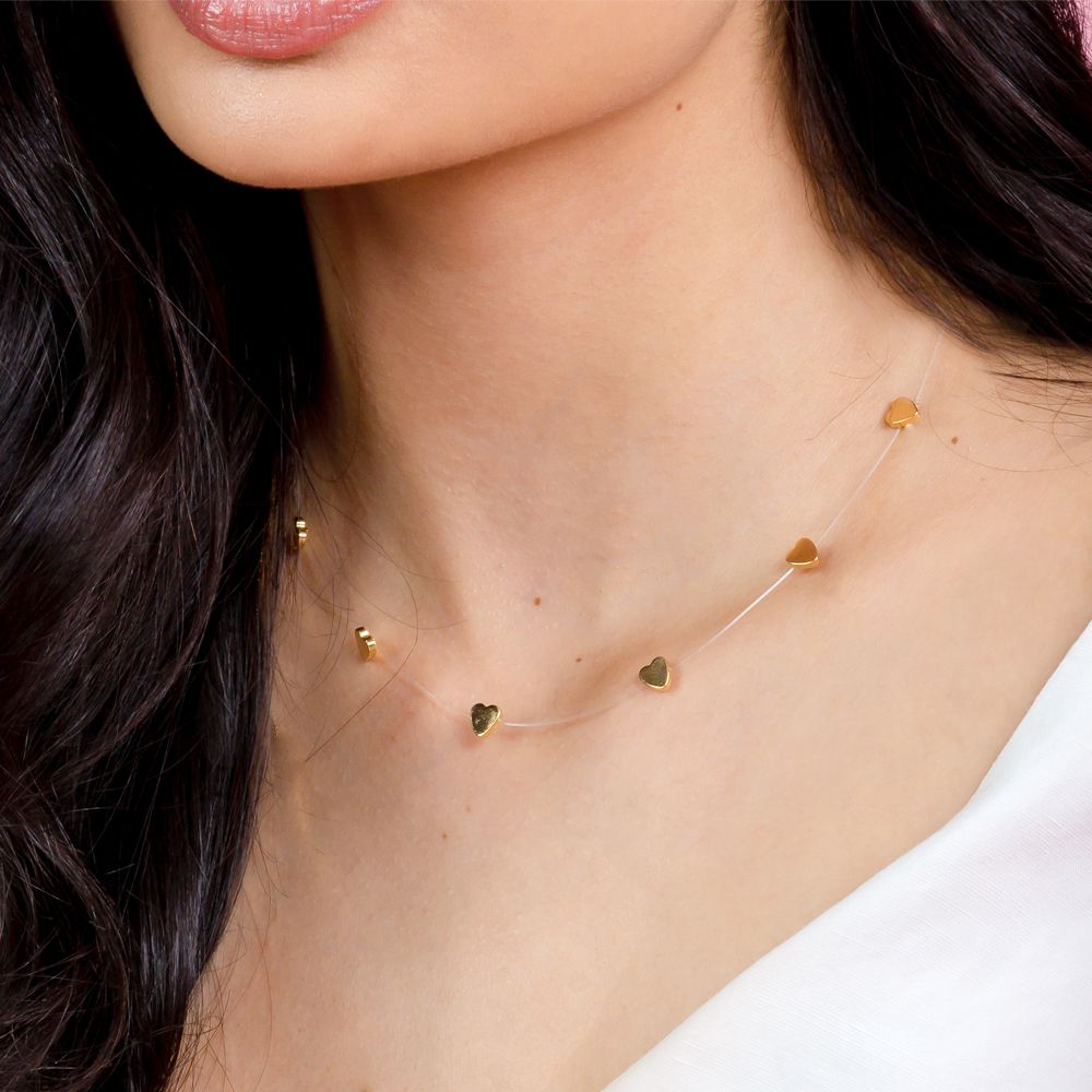 Colar de nylon com corações lisos banho de Ouro 18k.