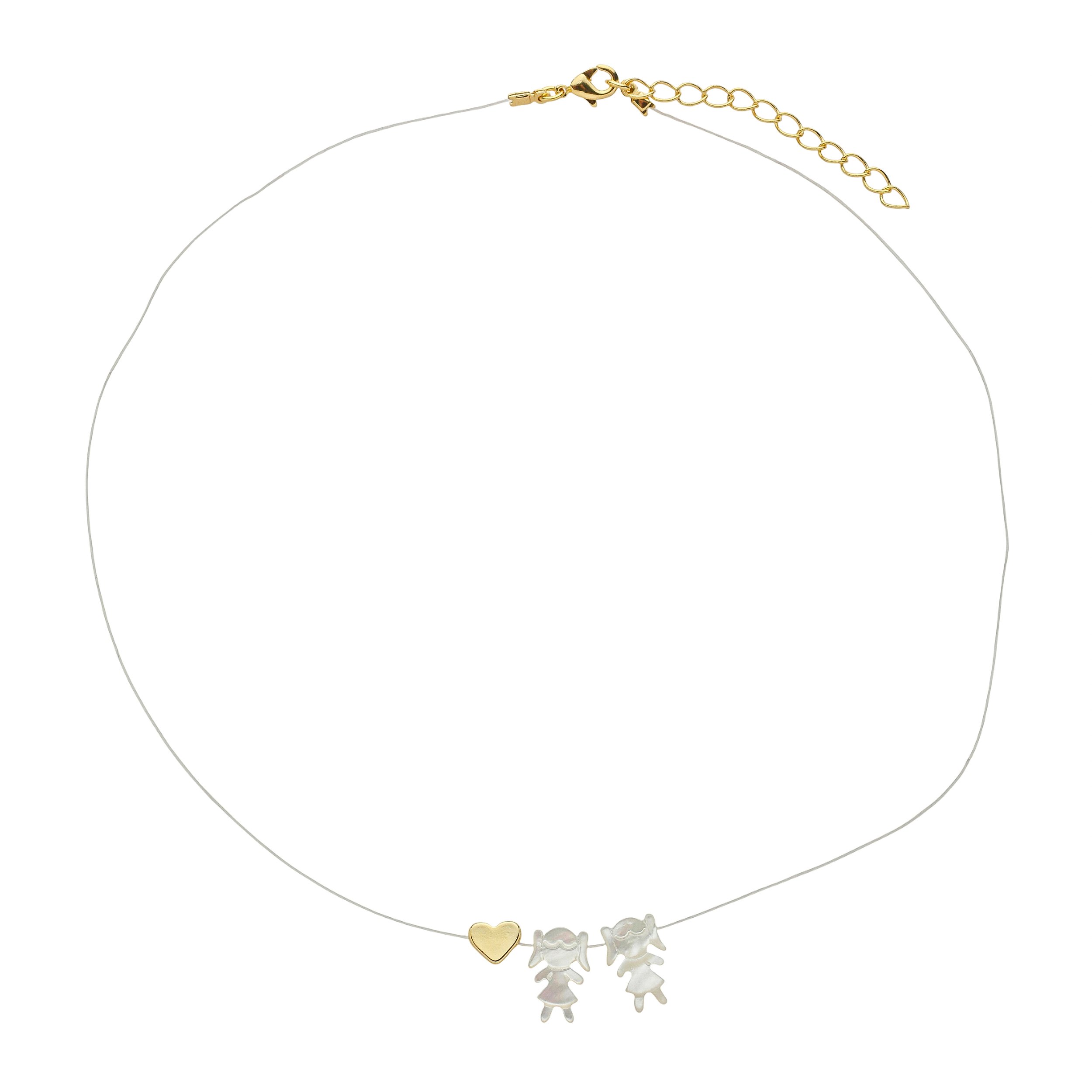 Colar Duas Meninas Madrepérola em Fio de Nylon no Banho de Ouro 18k