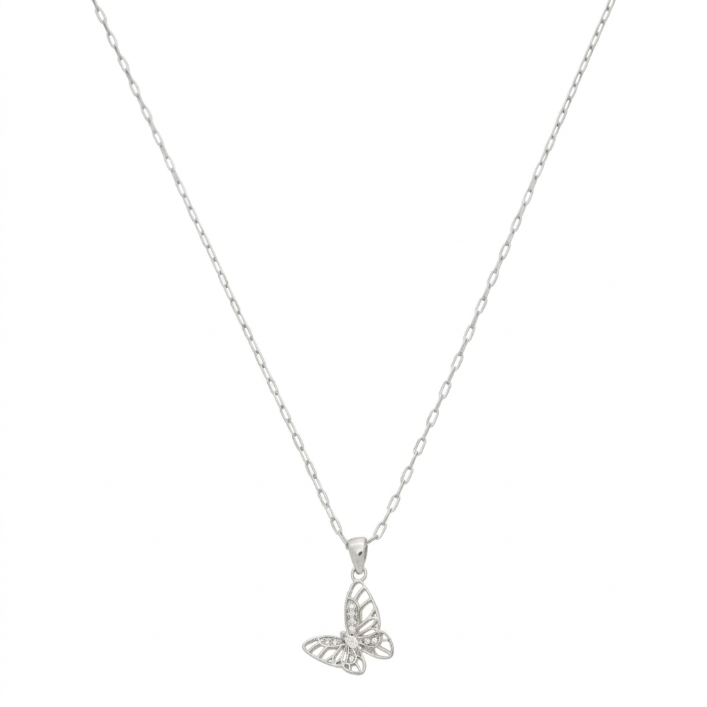 Este colar possui correntinha com pingente de borboleta vazada, com detalhes em zircônias que proporcionam brilho à peça. Um acessório feminino e cheio de charme, perfeito para complementar o visual.