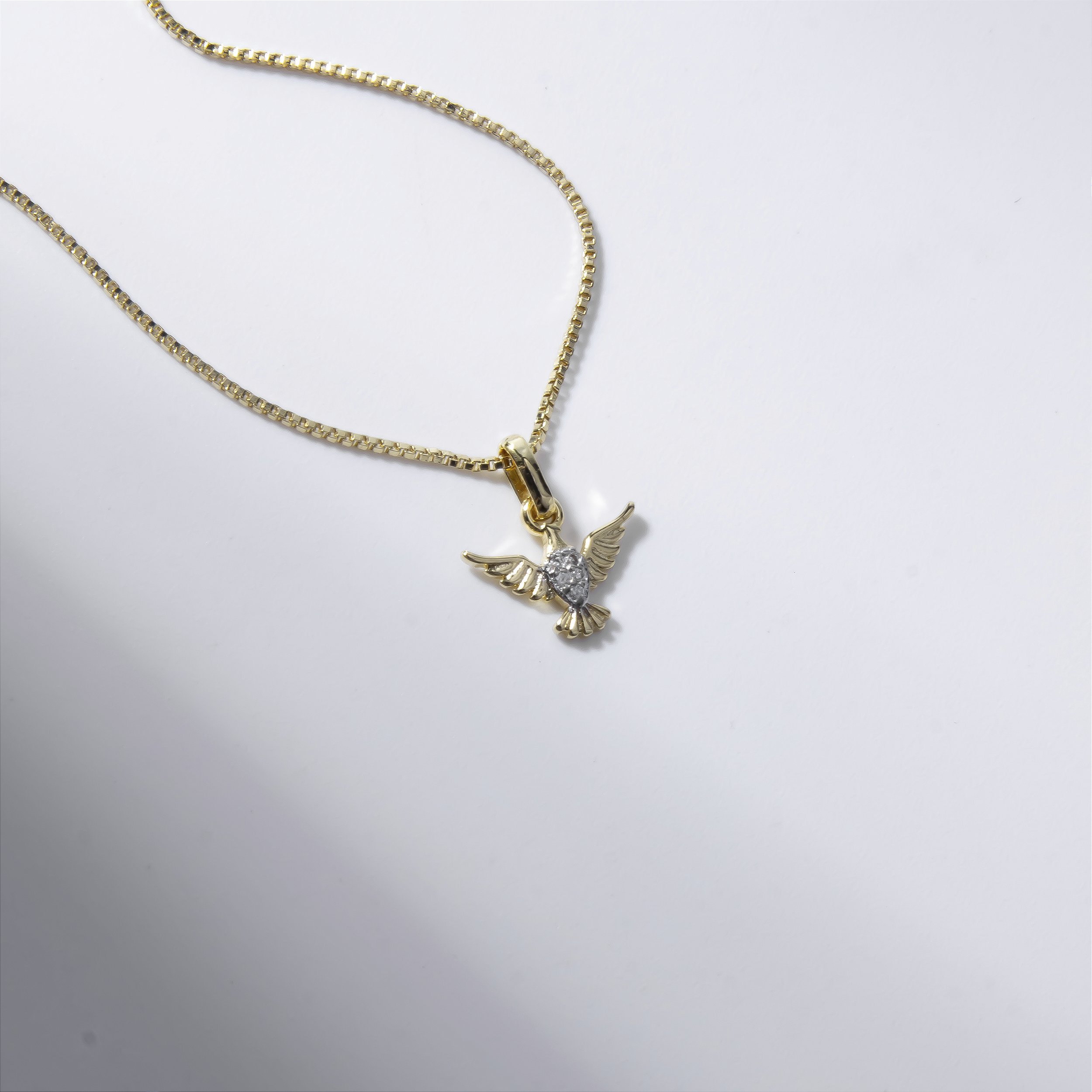 colar, espírito santo, mini, banho de ouro 18k, dourado, pingente religioso, acessório feminino, joia delicada, colar de fé, semi-joia, colar banhado a ouro, presente religioso, colar com pingente, colar espiritual, colar cristão