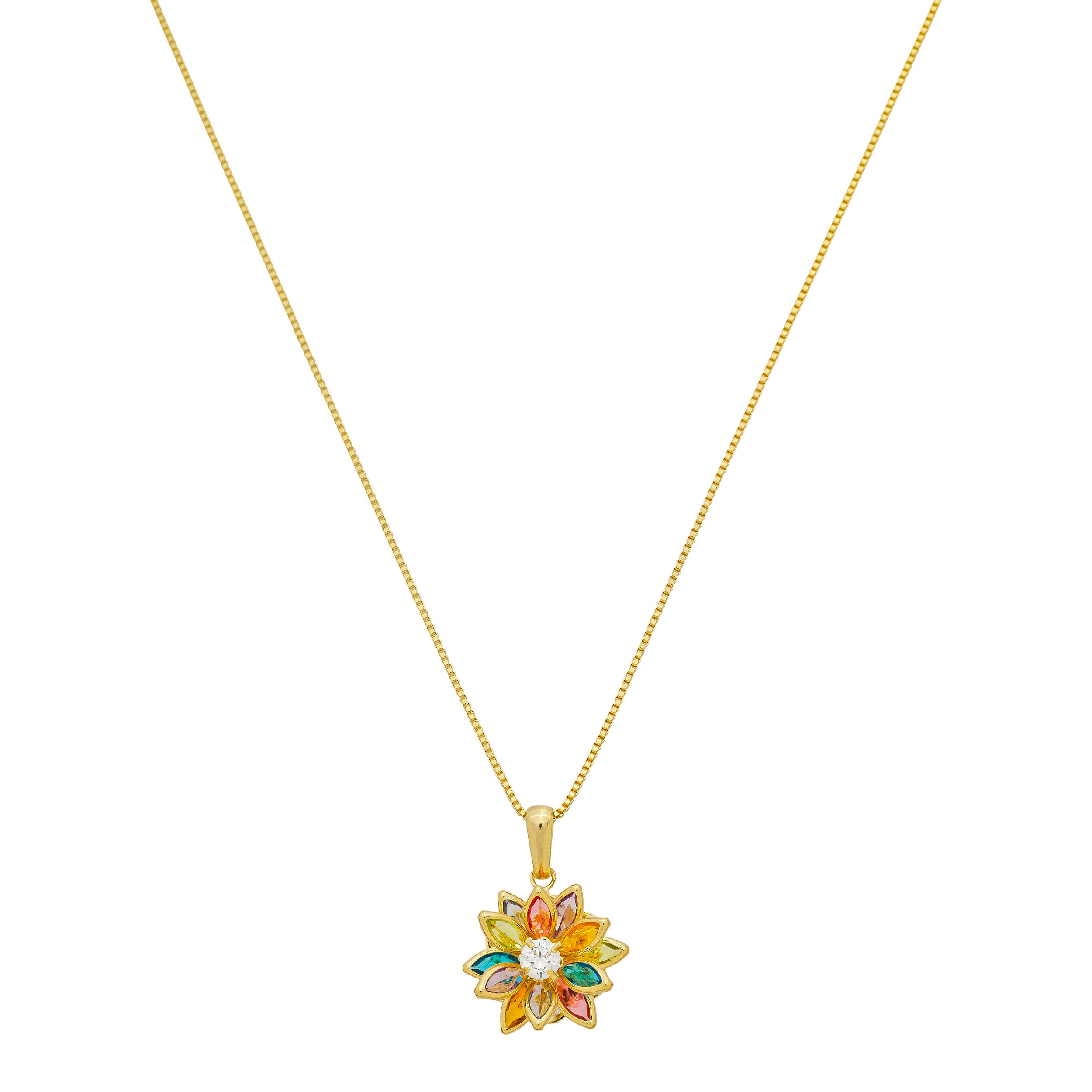 Colar Flor Lótus Pétalas Coloridas Banho de Ouro 18k