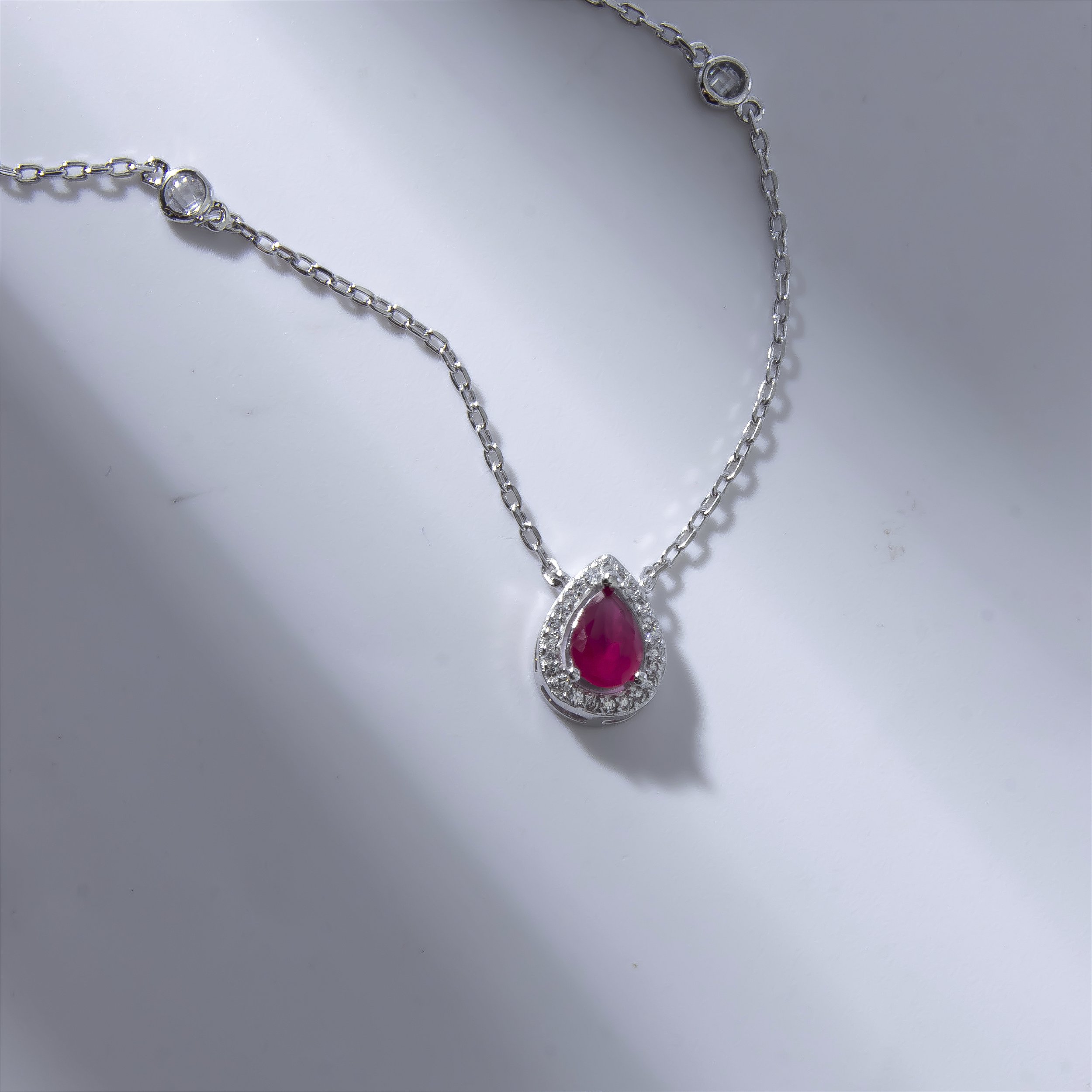 Colar Gota Rubi Detalhes Zircônias Banho de Ródio Branco
